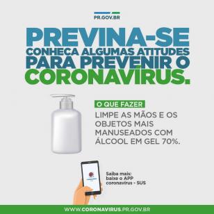 12:30 Saúde orienta: fique em casa A Secretaria de Estado da Saúde (Sesa), por meio das áreas técnicas envolvidas no enfrentamento ao coronavírus no Paraná, orienta que a população fique em casa para evitar a disseminação do vírus.