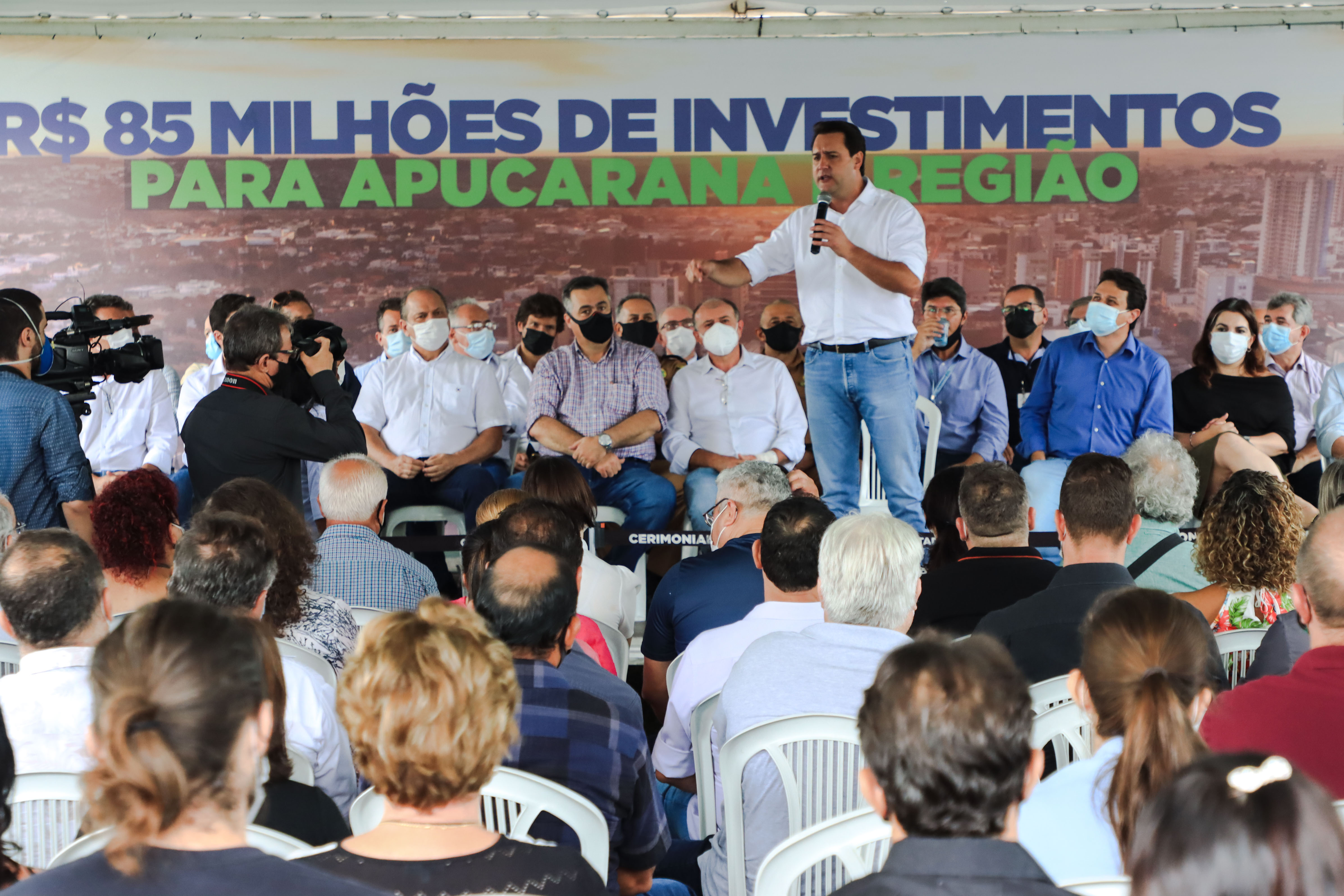 O governador Carlos Massa Ratinho Junior anuncia novos investimentos para Apucarana e outros municípios da região. Apucarana, 27/01/2022 Foto: José Fernando Ogura/AEN