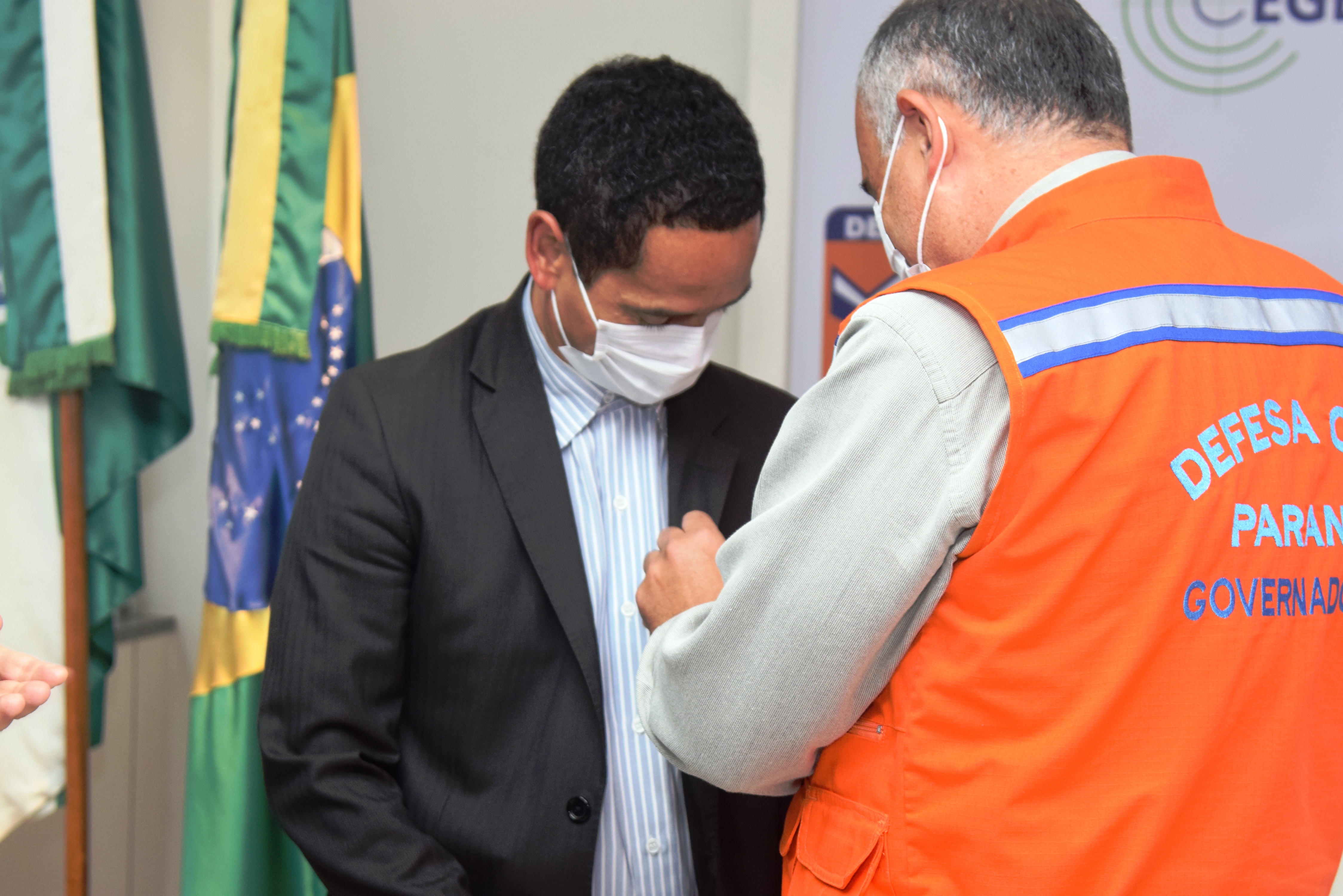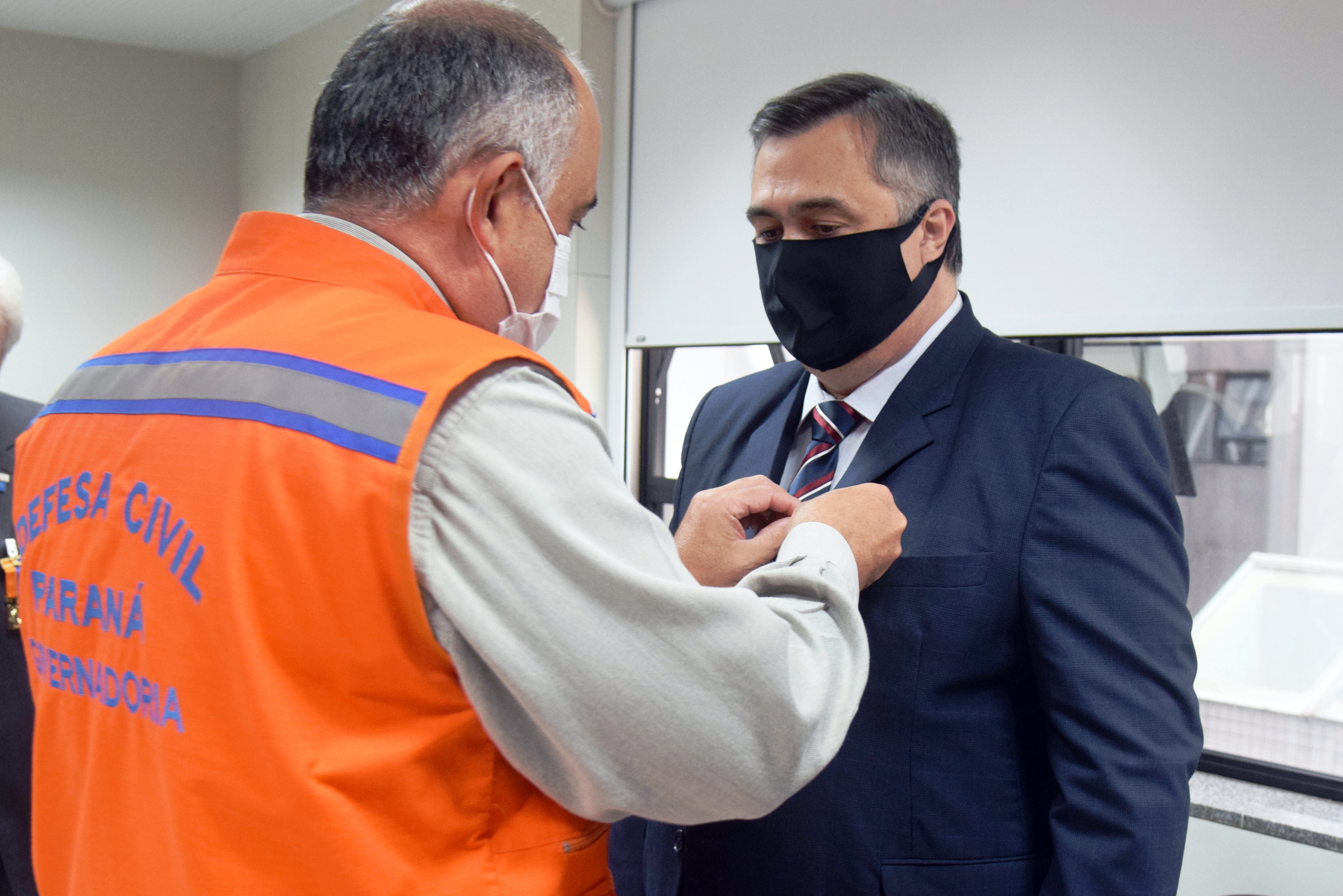 O secretário de Estado da Saúde, Beto Preto, recebeu nesta quarta-feira (11) a medalha de mérito e certificados “Coronel QOBM Natan Dario Bezerra” da Defesa Civil do Paraná, em homenagem ao trabalho a frente da Secretaria de Estado da Saúde (Sesa).