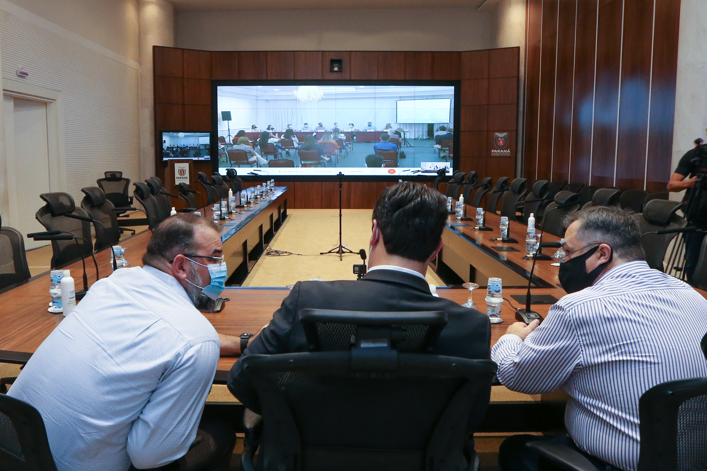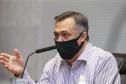O governador Carlos Massa Ratinho Junior participa nesta quarta-feira (24), da reuniao do Conselho de Secretarias Municipais de Saúde do Paraná (Cosems-PR ) acompanhado com o Secretario de Estado da Saude, Beto Preto e do Secretario de Estado da Comunicação e da Cultura, João Evaristo Debiasi Curitiba, 24/02/2021. Foto: Geraldo Bubniak/AEN