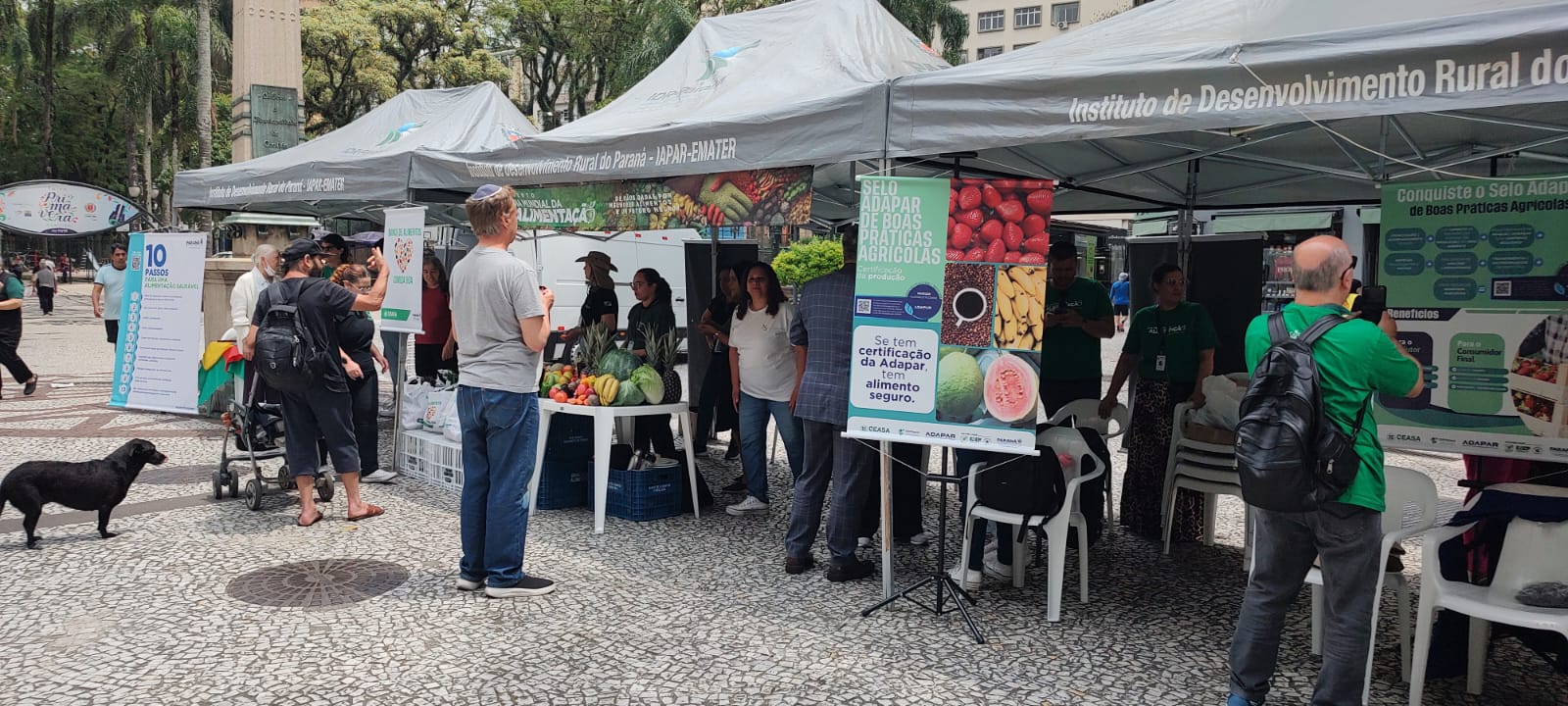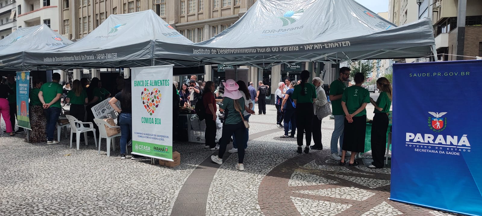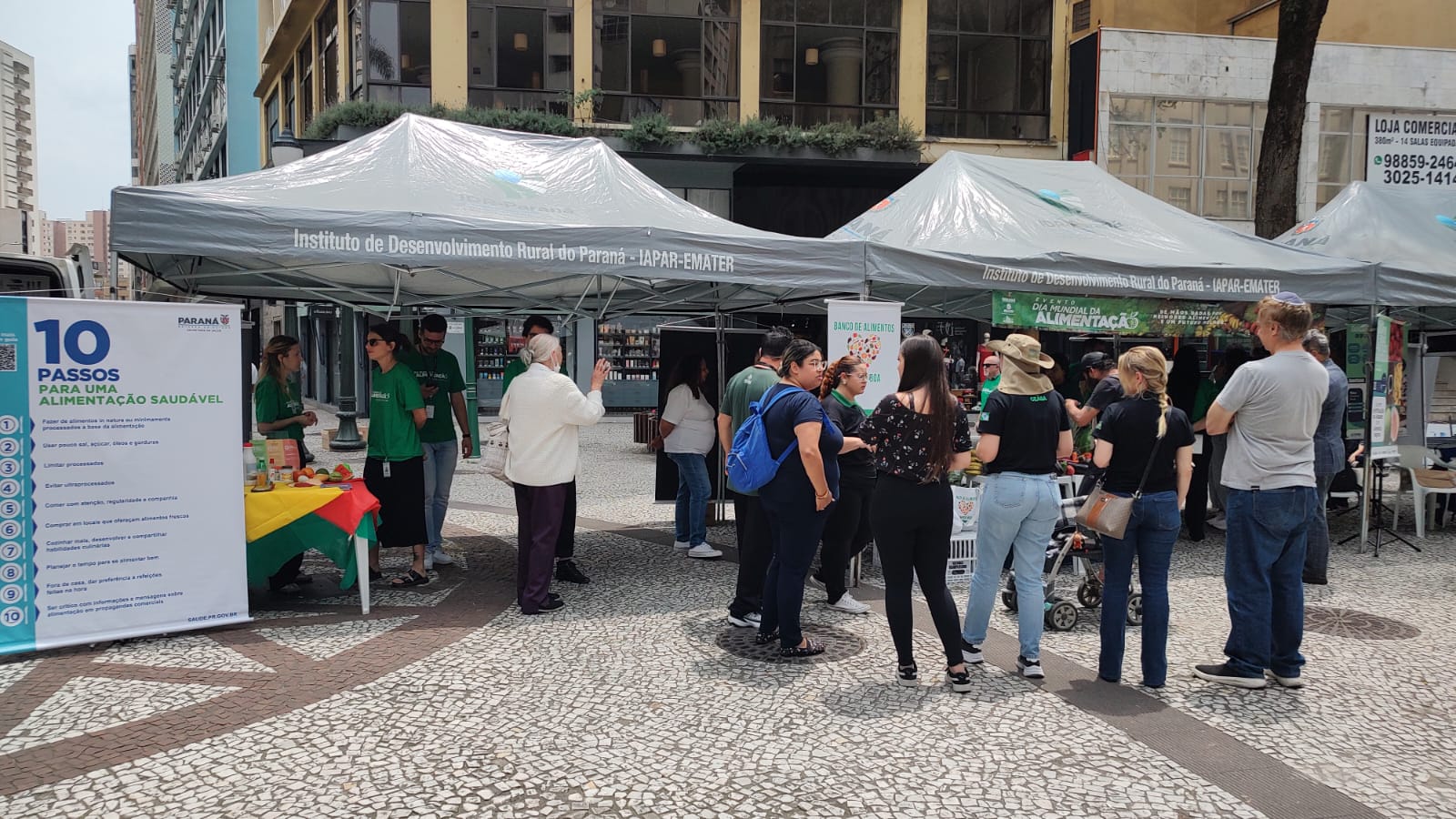 Em celebração ao Dia Mundial da Alimentação, integrantes da Câmara Governamental Intersetorial de Segurança Alimentar e Nutricional do Paraná (Cainsan-PR), da qual a Secretaria de Estado da Saúde do Paraná (Sesa) faz parte, participaram nesta quinta-feira (16) na Boca Maldita em Curitiba de uma ação de sensibilização da população sobre a importância de uma alimentação saudável e sustentável. A Secretaria de Estado da Agricultura e Abastecimento, IDR-Paraná, Adapar e Ceasa, Fundepar, Sanepar também estiveram presentes.