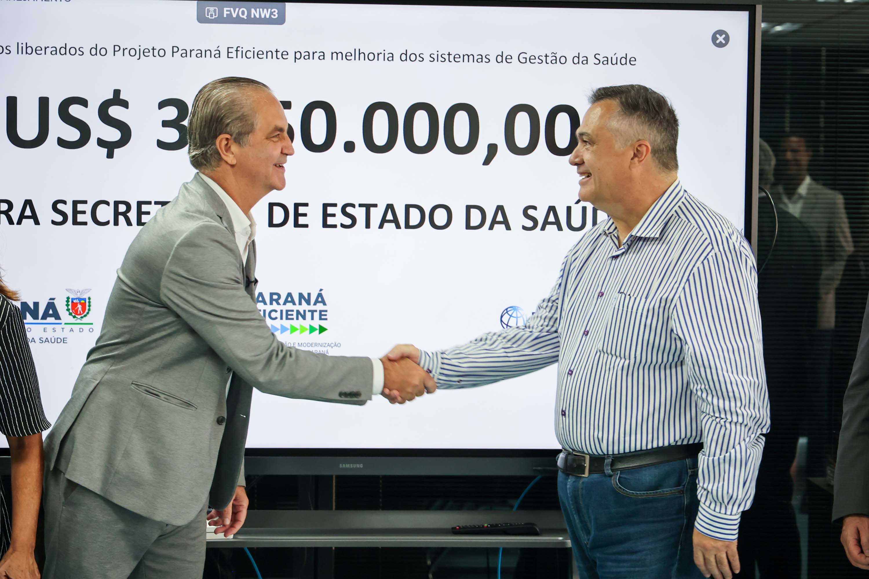 Com o cumprimento das metas estabelecidas por parte do Governo do Paraná, o Banco Mundial (BIRD) vai desembolsar novos valores do Projeto Paraná Eficiente, coordenado pela Secretaria do Planejamento (SEPL). Nesta semana foi confirmado o repasse de US$ 3,75 milhões (R$ 19,8 milhões) para a Secretaria de Saúde. Esse valor poderá ser investido para aprimorar combate a riscos cardiovasculares e modernizar sistemas da secretaria.
