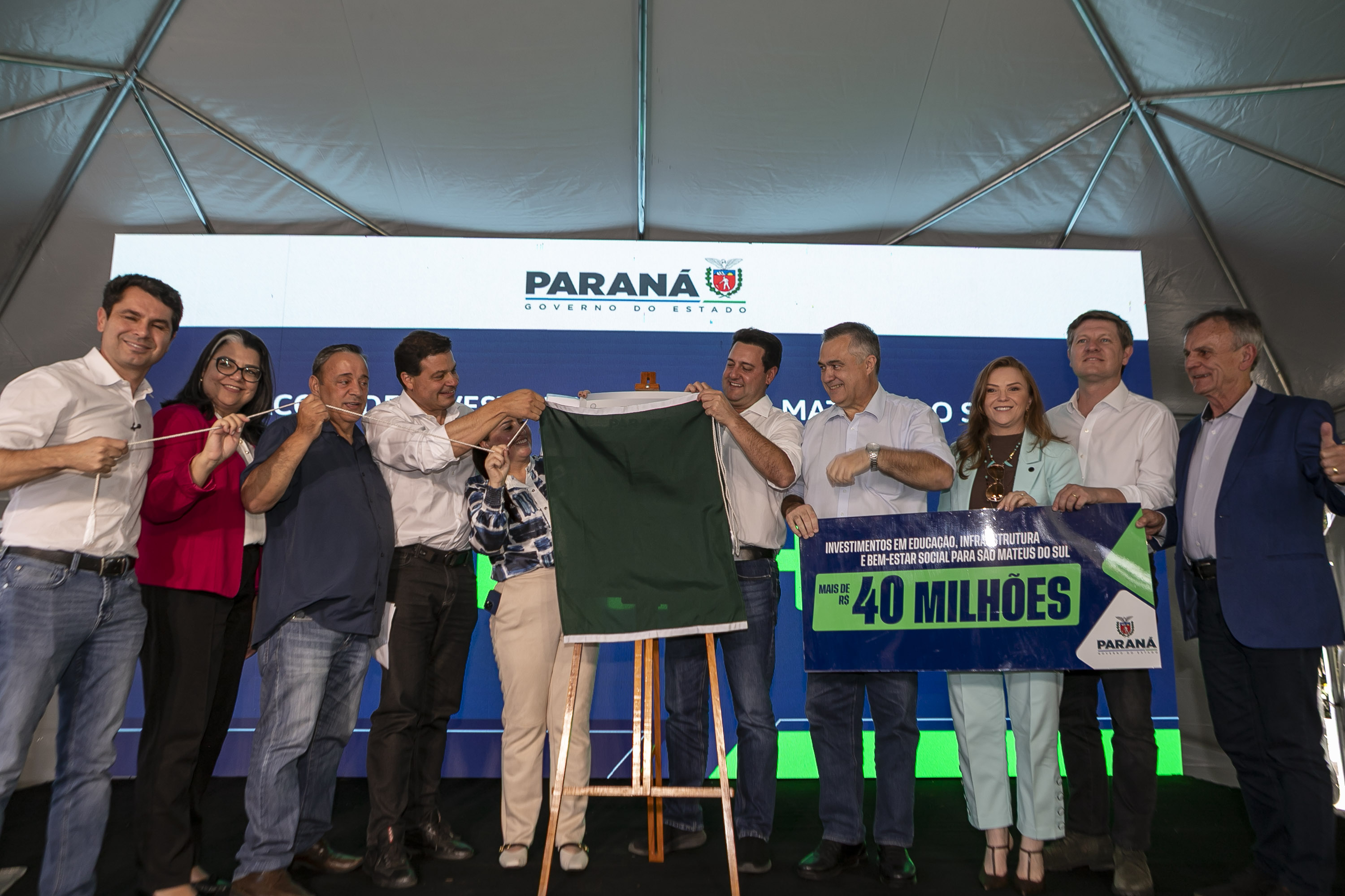 PRESENÇAS – Participaram da cerimônia a secretária estadual da Mulher, Igualdade Racial e Pessoa Idosa; Mariana Neris; o presidente da Assembleia Legislativa do Paraná, Alexandre Curi; o deputado estadual Hussein Bakri, líder do governo na Assembleia; e os deputados federais Sandro Alex, Beto Preto, Leandre Dal Ponte e Toninho Wandscheer.