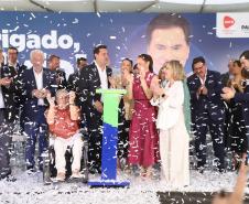 PRESENÇAS – Estiveram presentes no evento o vice-governador Darci Piana; a primeira-dama Luciana Saito Massa; os secretários da Casa Civil, João Carlos Ortega; da Casa Militar, tenente-coronel Marcos Antônio Tordoro; do Planejamento, Guto Silva; da Comunicação, Cleber Mata; do Desenvolvimento Social e Família, Rogerio Carboni; o deputado federal Beto Preto; os deputados estaduais Márcia Huçulak e Pedro Paulo Bazana; o diretor-geral do Complexo do Hospital do Trabalhador, Guilherme Graziani; o presidente da Fundação da Universidade Federal do Paraná (Funpar), Tomás Sparano Martins; o diretor-presidente do Ipardes, Jorge Callado; o diretor das afiliadas do SBT, Daniel Abravanel; o empresário e apresentador Carlos Massa e sua esposa Solange Massa; o presidente do Grupo Massa, Gabriel Massa; o apresentador Rafael Massa; a 1ª subdefensora pública-geral do Paraná, Lívia Martins Salomão Brodbeck e Silva; e demais autoridades.