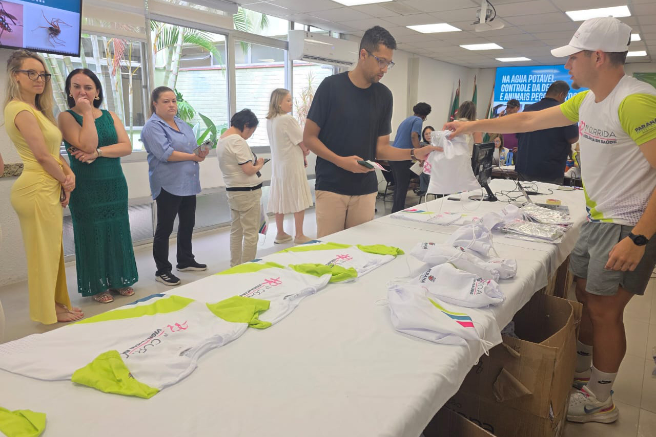 A Secretaria de Estado da Saúde (Sesa) iniciou nesta sexta-feira (12) a entrega dos 5 mil kits para os participantes da 1ª Corrida de Vigilância em Saúde. O evento, que acontecerá no domingo (14), em Curitiba, promete reunir uma multidão de entusiastas do esporte e da vida saudável.