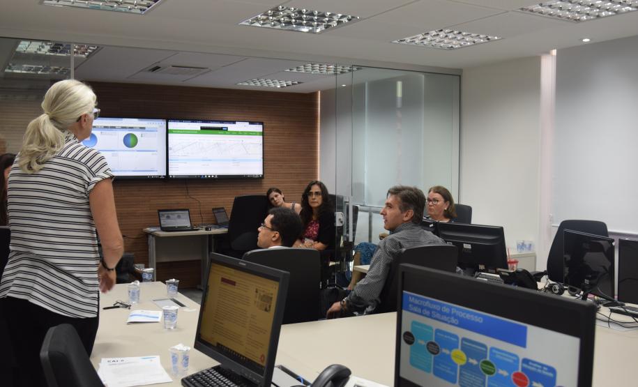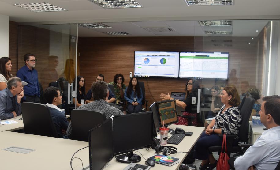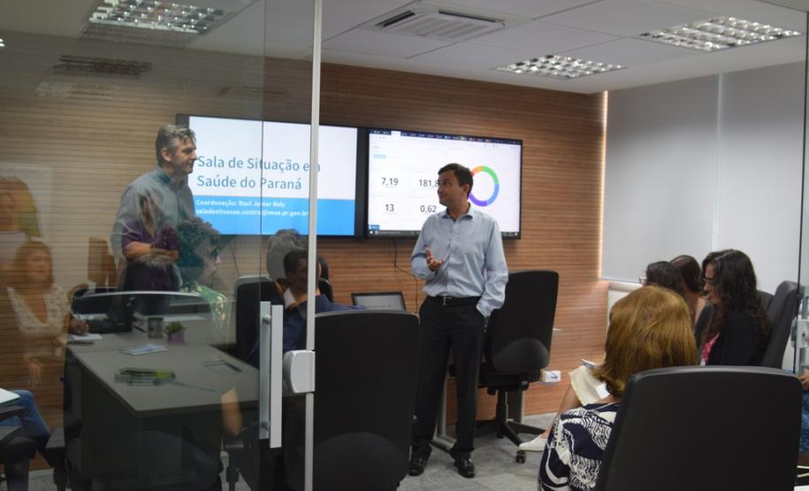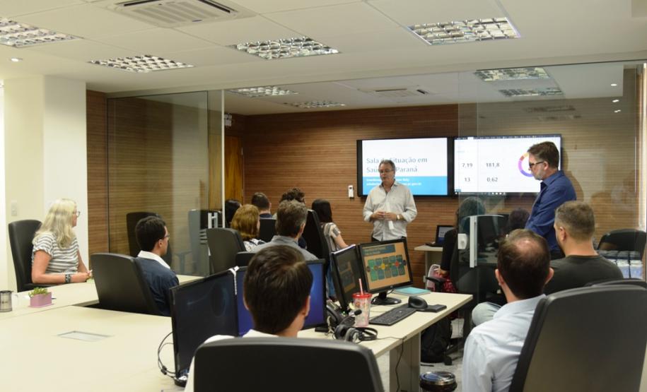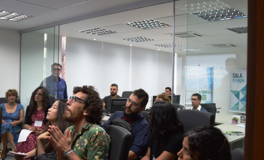 Participantes da Escola de Saúde Pública de Harvard e da Universidade Federal do Paraná visitaram, na manhã desta quarta-feira, a Sala de Situação da Secretaria de Saúde do Paraná que realiza o monitoramento, a analise e dá publicidade aos dados das arboviroses (dengue, zika e chikungunya), em tempo real.