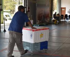 O Governo do Estado começou a distribuir nesta sexta-feira (20) ,para as 22 regionais de Saúde, 445.388 doses de vacinas contra a Covid-19. A remessa é formada por 261.138 doses – 131.058 de Pfizer, 130.080 da CoronaVac – que desembarcaram pela manhã no Aeroporto Internacional Afonso Pena, em São José dos Pinhais - e 184.250 da AstraZeneca, referente a 40ª pauta de distribuição.