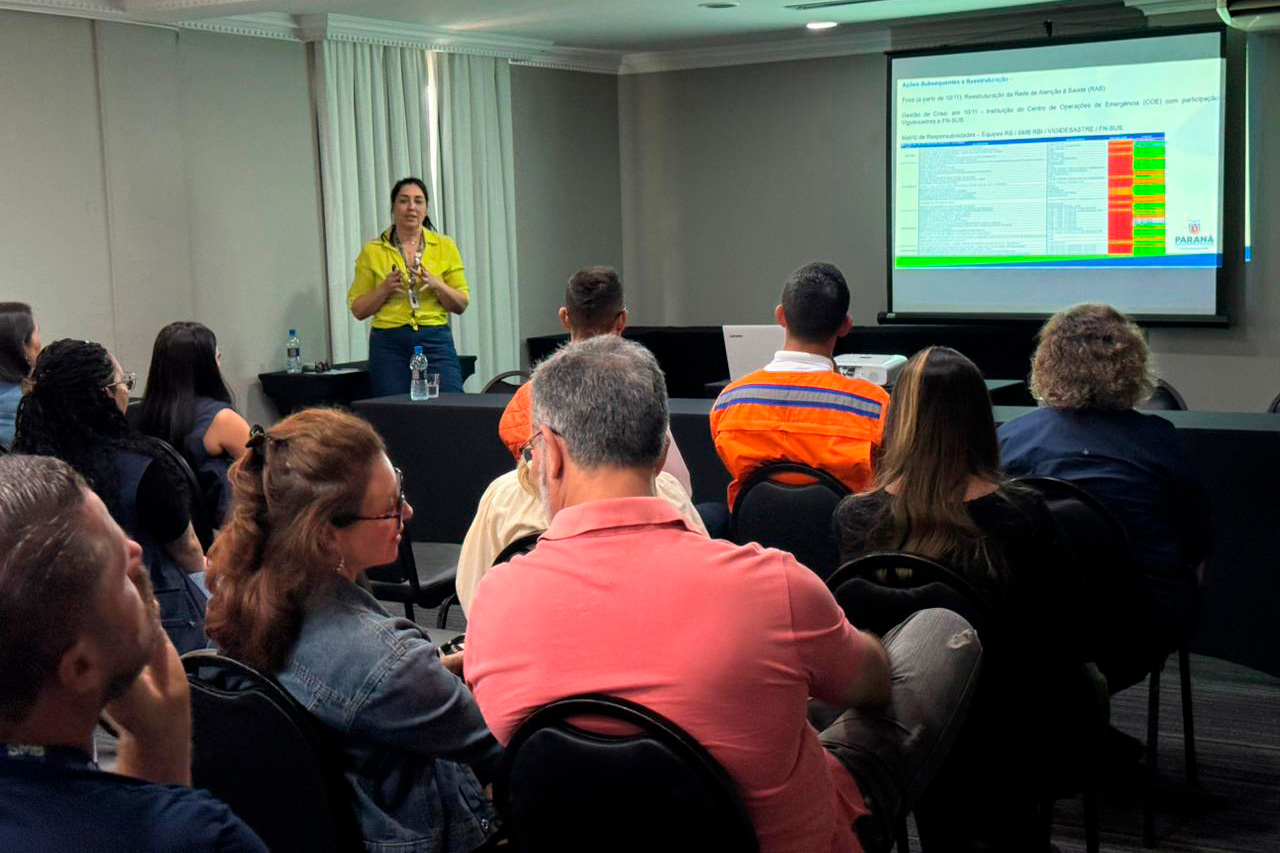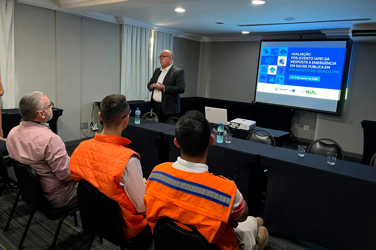 A Secretaria de Estado da Saúde (Sesa), em parceria com o Ministério da Saúde (MS), promoveu nesta segunda e terça-feira (2 e 3), em Curitiba, a Oficina de Avaliação Pós-Evento (APE) da resposta à emergência em saúde pública após desastre natural que atingiu Rio Bonito do Iguaçu, no Centro-Sul do Paraná. O encontro reuniu gestores, técnicos e especialistas para analisar as ações desenvolvidas após o tornado que atingiu o município em novembro de 2025 e definir estratégias para fortalecer a preparação do sistema de saúde diante de novos eventos climáticos extremos.