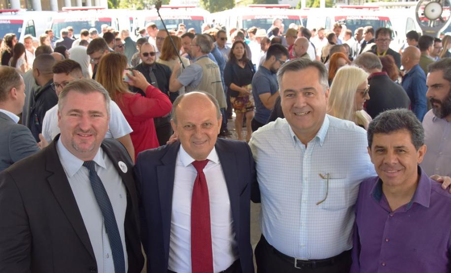 Participaram do evento: o vice-governador Darci Piana; os secretários Guto Silva (Casa Civil), Márcio Nunes (Desenvolvimento Sustentável e Turismo) e Reinhold Stephanes (Administração e Previdência); o presidente da Assembleia Legislativa, Ademar Traiano; o líder do Governo na Assembleia, Hussein Bakri; os deputados estaduais Luiz Cláudio Romanelli, Tercílio Turini, Marcel Micheletto, Nelson Luersen, Alexandre Amaro, Anibelli Neto, Artagão Júnior, Cobra Repórter, Delegado Fernando Martins, Delegado Jacovós, Delegado Recalcatti, Dr. Batista, Emerson Bacil, Francisco Bührer, Homero Marchese, Jonas Guimarães, Reichembach, Ricardo Arruda, Rodrigo Estacho, Tiago Amaral e Soldado Adriano José; além de prefeitos e servidores da Sesa.