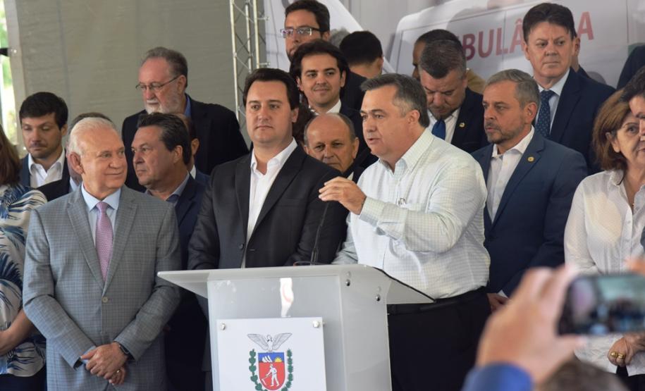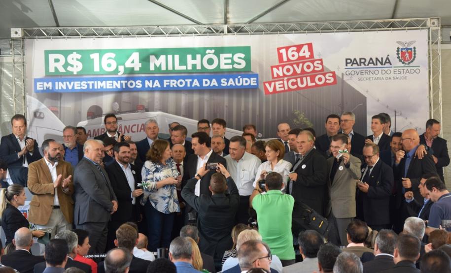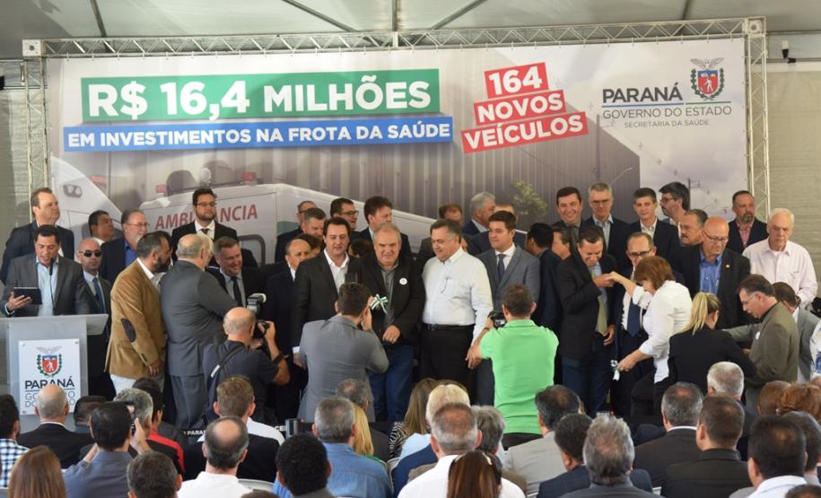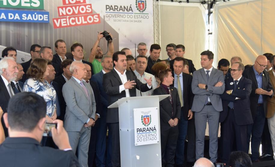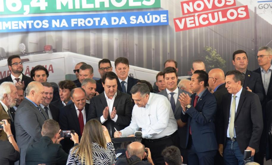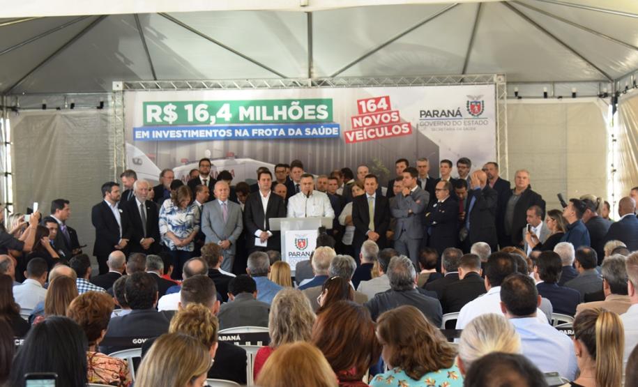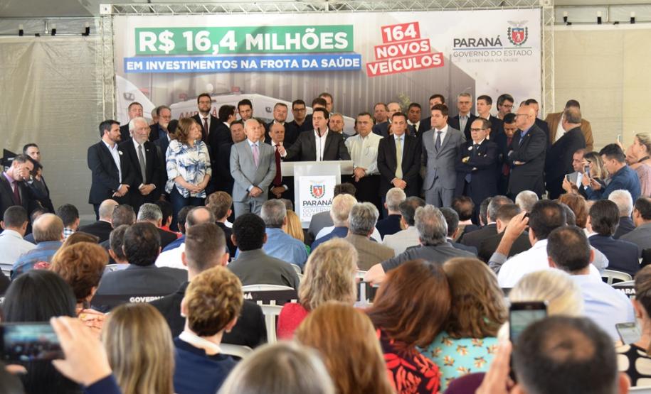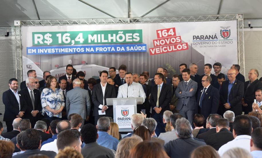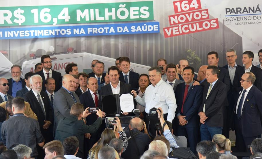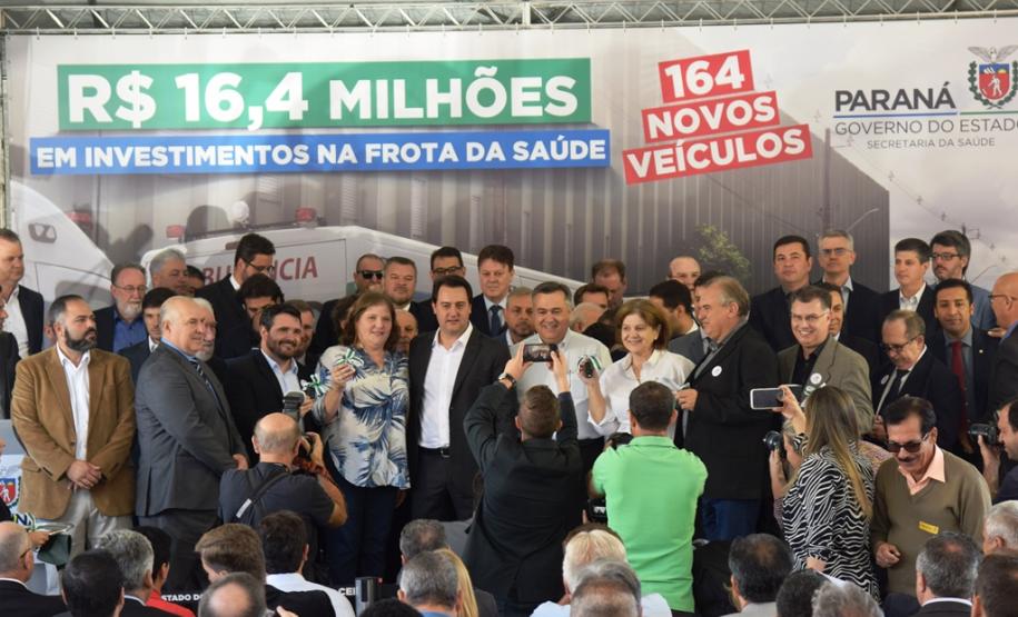 O governador Carlos Massa Ratinho Júnior e o secretário Beto Preto entregaram nesta quarta-feira (4) 165 veículos, entre ambulâncias e automóveis, no valor de aproximadamente R$ 16 milhões. A nova frota atenderá municípios que estavam sem veículos e substituirá os veículos com maior tempo de uso e desgaste.
