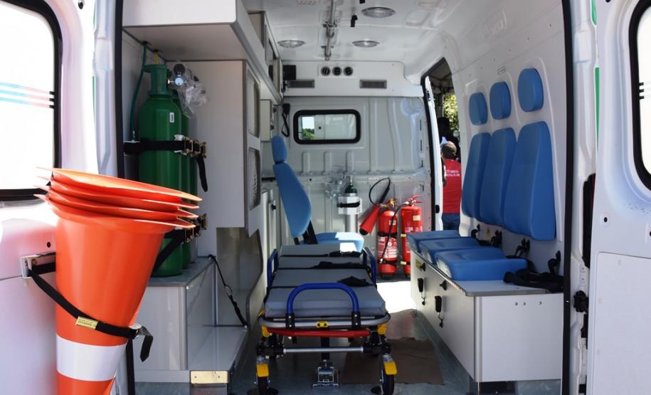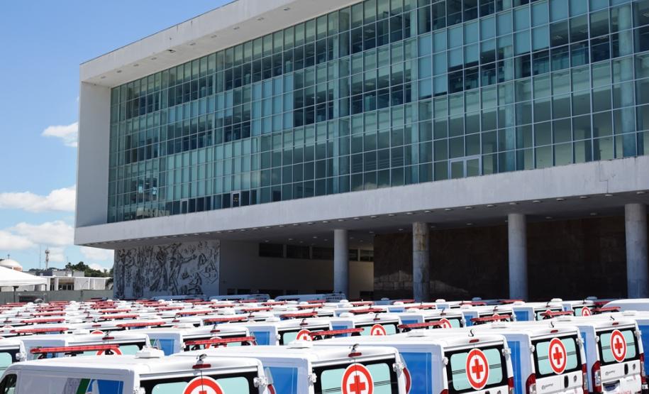 VEÍCULOS – Inicialmente, estava prevista a entrega de 164 veículos, mas mais uma ambulância de suporte básico foi incluída para entrega ao serviço da Polícia Militar. As ambulâncias de suporte avançado são utilizadas para atendimentos em situação de urgência e emergência, as equipes que atuam nestes veículos é composta por no mínimo três profissionais, sendo um condutor de veículo de urgência, um enfermeiro e um médico.
