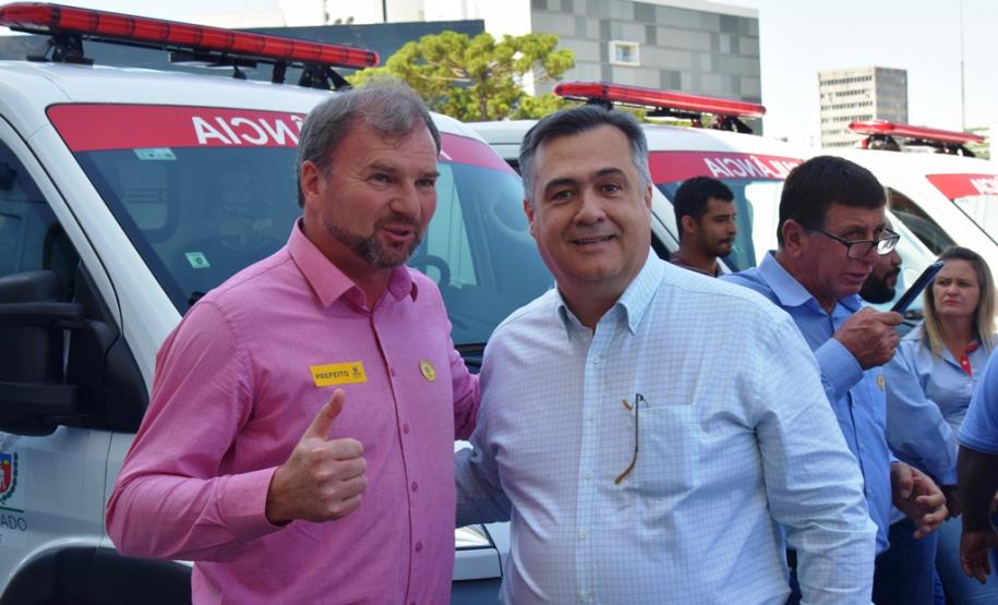 Para Apucarana foram entregues duas ambulâncias de suporte avançado. O prefeito Junior da Femac agradeceu pela destinação dos veículos ao município. “São milhares de atendimentos diariamente e com essa renovação da frota, teremos mais condições para o antedimento a quem for necessário. Agradecemos a preocupação do Beto Preto em cuidar da saúde no dia a dia, pensar em soluções e resolver problemas dessa área tão importante.”