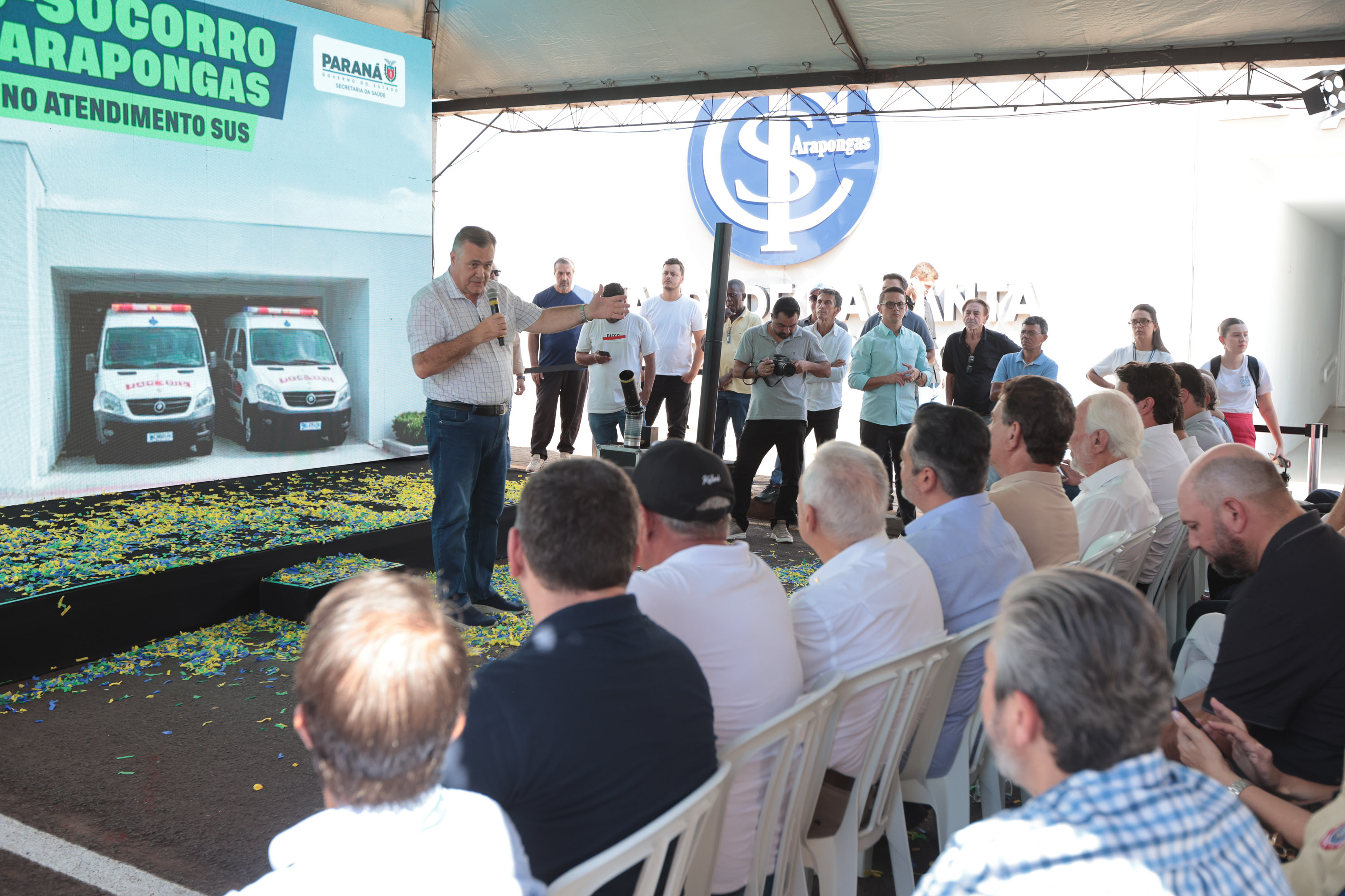 O Governo do Estado inaugurou nesta sexta-feira (6) o novo pronto-socorro da Santa Casa de Arapongas, na região Norte do Paraná, unidade que recebeu investimento de R$ 3,4 milhões, feito pelo Governo do Estado, por meio da Secretaria da Saúde (Sesa). Na solenidade, que contou com a participação do vice-governador Darci Piana, foi ressaltada que a modernização era aguardada há mais de 15 anos, após parte da estrutura ter desabado durante fortes chuvas. Desde então, a população era atendida provisoriamente em uma sala de cerca de 100 metros quadrados.