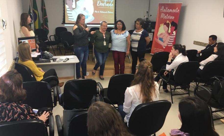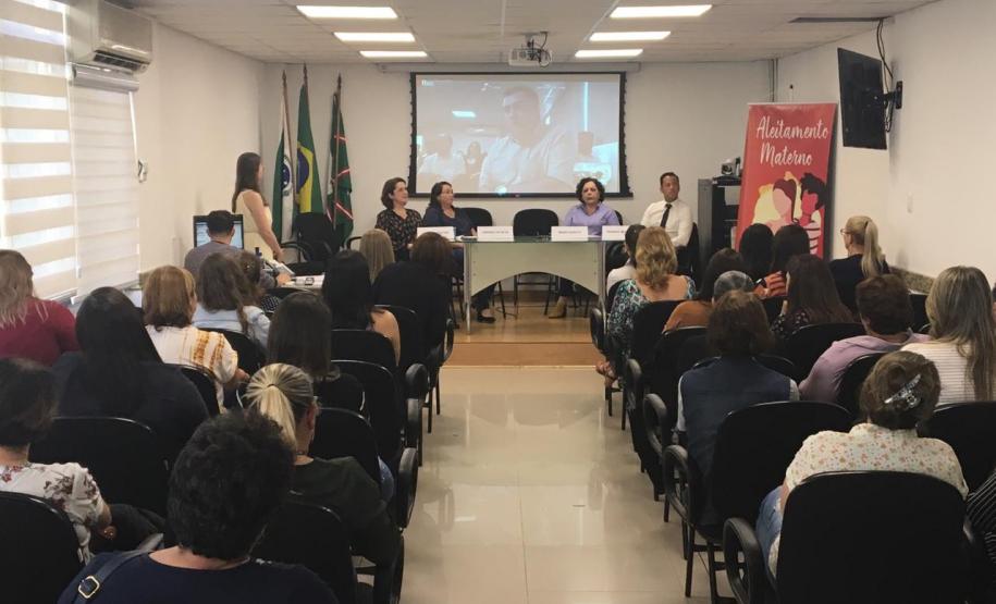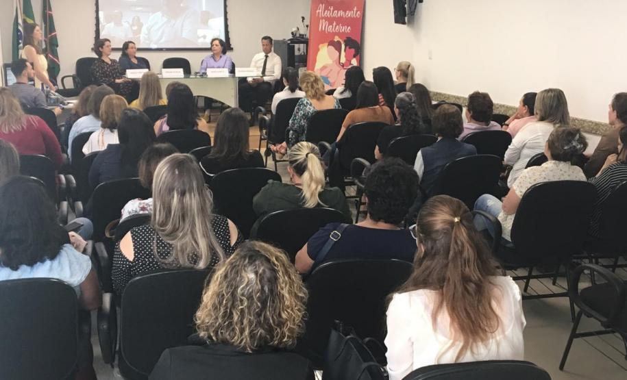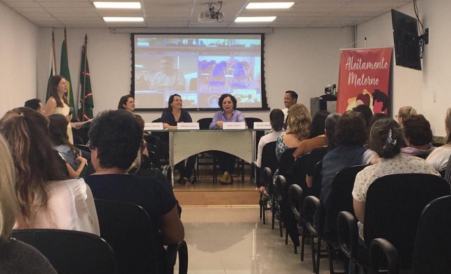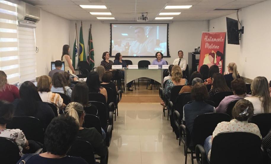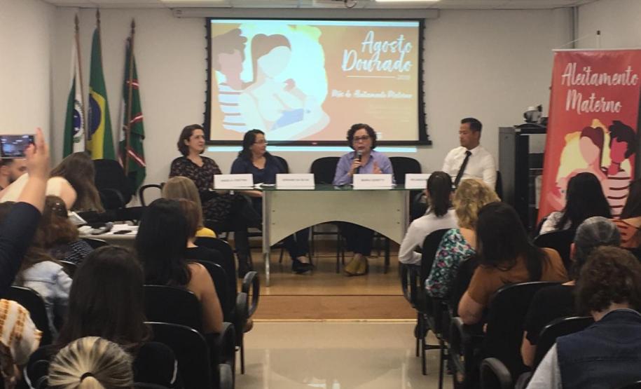 A Divisão da Criança e do Adolescente da Secretaria Estadual da Saúde (Sesa) realizou nesta sexta-feira(30) o evento que marcou o fim das atividades do Agosto Dourado. Além de palestras, foram entregues placas que certificam Unidades de Saúde da Família (USF) em reconhecimento ao trabalho desenvolvido em dois programa do Ministério da Saúde: Mulher Trabalhadora que Amamenta (MTA) e Estratégia Amamenta e Alimenta Brasil (EAAB). Seis ambientes de Pinhais e uma unidade de Curitiba foram certificadas em 2019. O evento foi transmitido via webconferência para regionais de todo o Estado e o secretário Beto Preto participou a distância por meio de vídeo em Apuracana.