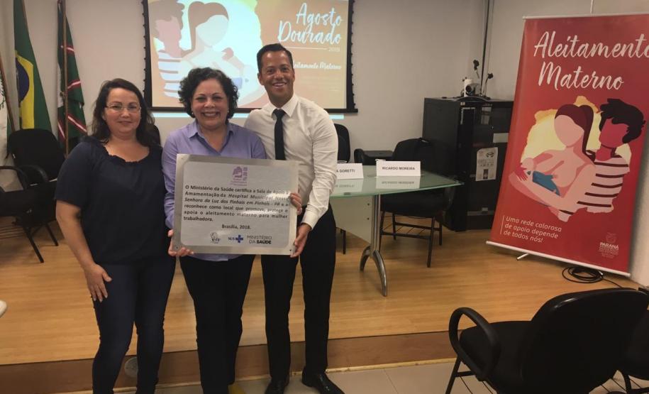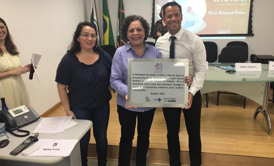A sala de apoio à amamentação do Hospital Municipal Nossa Senhora da Luz dos Pinhais também foi certificada e o diretor Ricardo Moreira recebeu a placa de reconhecimento ao trabalho desenvolvido.