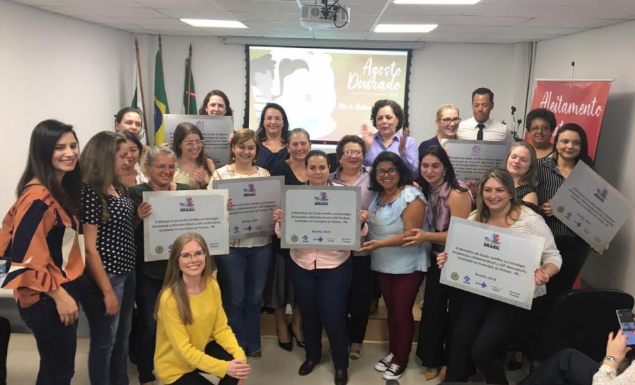 CERTIFICAÇÃO - A certificação dos ambientes que realizam trabalho exemplar em relação ao programa Mulher Trabalhadora que Amamenta (MTA) e Estratégia Amamenta e Alimenta Brasil (EAAB) ocorreu com a entrega de placas que serão fixadas nas unidades.
