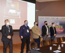PRESENÇAS – Participaram do evento o diretor-financeiro do Conselho Nacional de Secretarias Municipais de Saúde (Conasems), Hisham Hamida; o superintendente estadual do Ministério da Saúde do Paraná, Benedito Garcia, o secretário de Saúde de Mangueirinha, e presidente do Conselho de Secretarias Municipais de Saúde do Paraná (Cosems), Ivoliciano Leonarchik, além da secretária Municipal de Saúde de Curitiba, Márcia Huçulak.