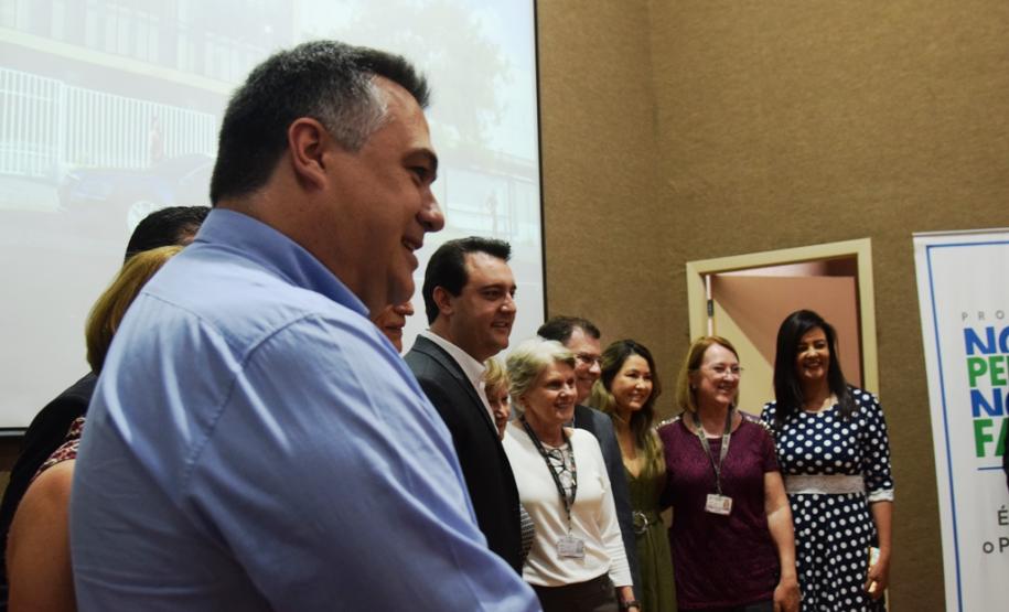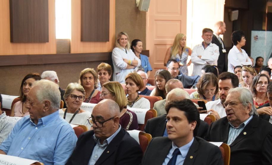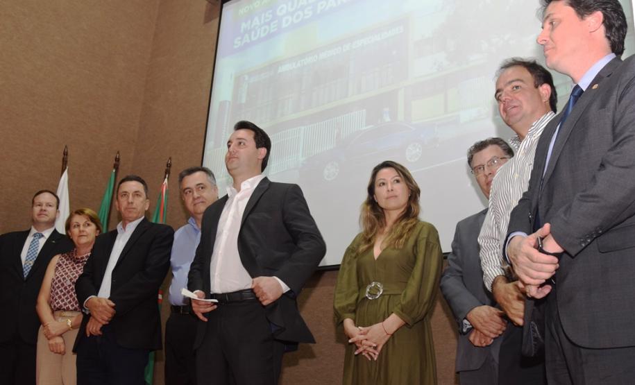 PRESENÇAS – Participaram da solenidade a primeira-dama do Estado, Luciana Saito Massa; o deputado estadual Wilmar Reichembach; o diretor do Departamento de Apoio à Pessoa com Deficiência e de Políticas Públicas para Acessibilidade da Secretaria de Estado da Justiça, Família e Trabalho, Felipe Braga Côrtes; a prefeita de Colombo, Beti Pavin; a secretária de Saúde de Curitiba, Márcia Huçulak; o vereador de Curitiba Dr. Wolmir; a vice-reitora da Universidade Federal do Paraná (UFPR), Graciela Inês Bolzón de Muniz; além de diretores e representantes de conselhos ligados à saúde.