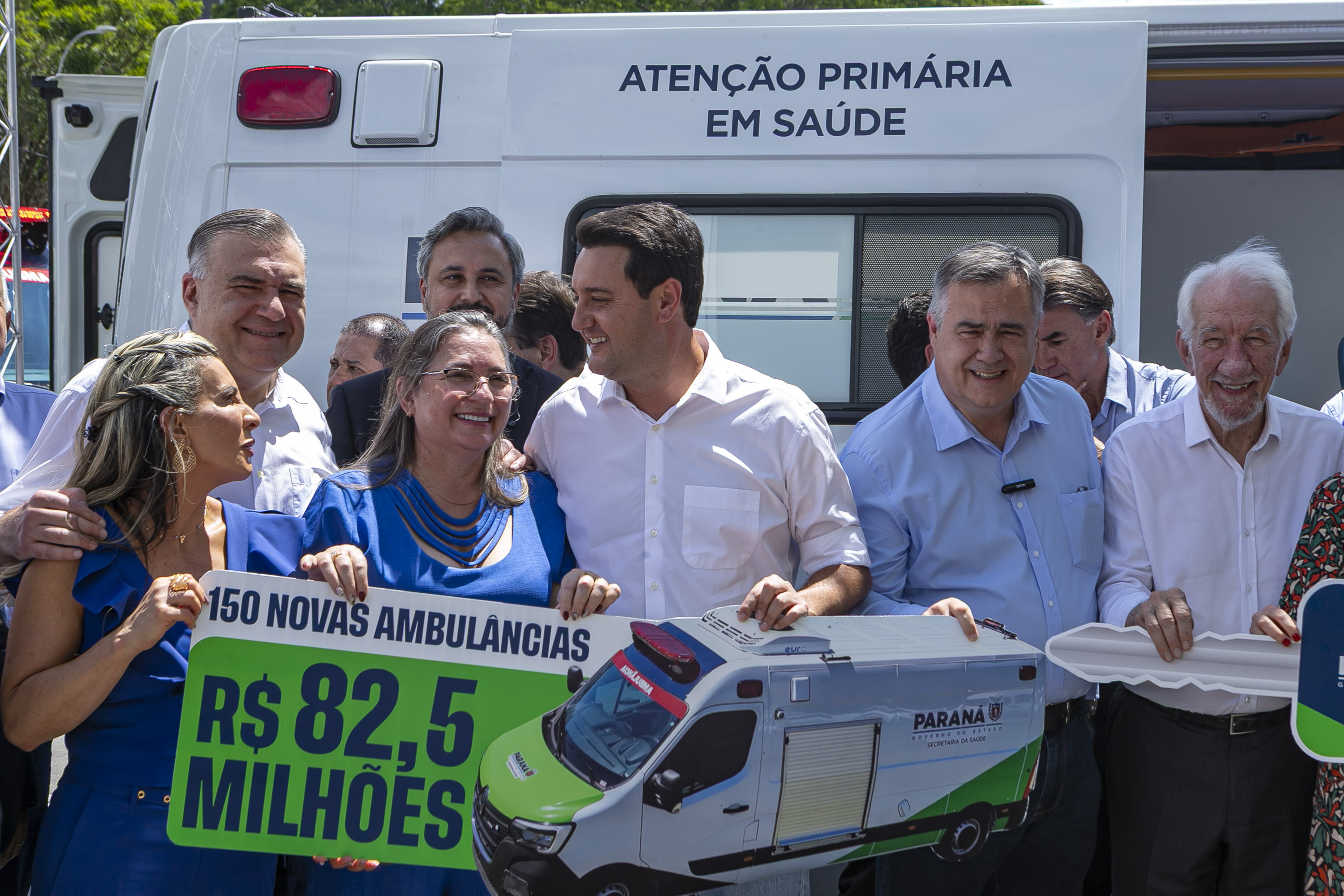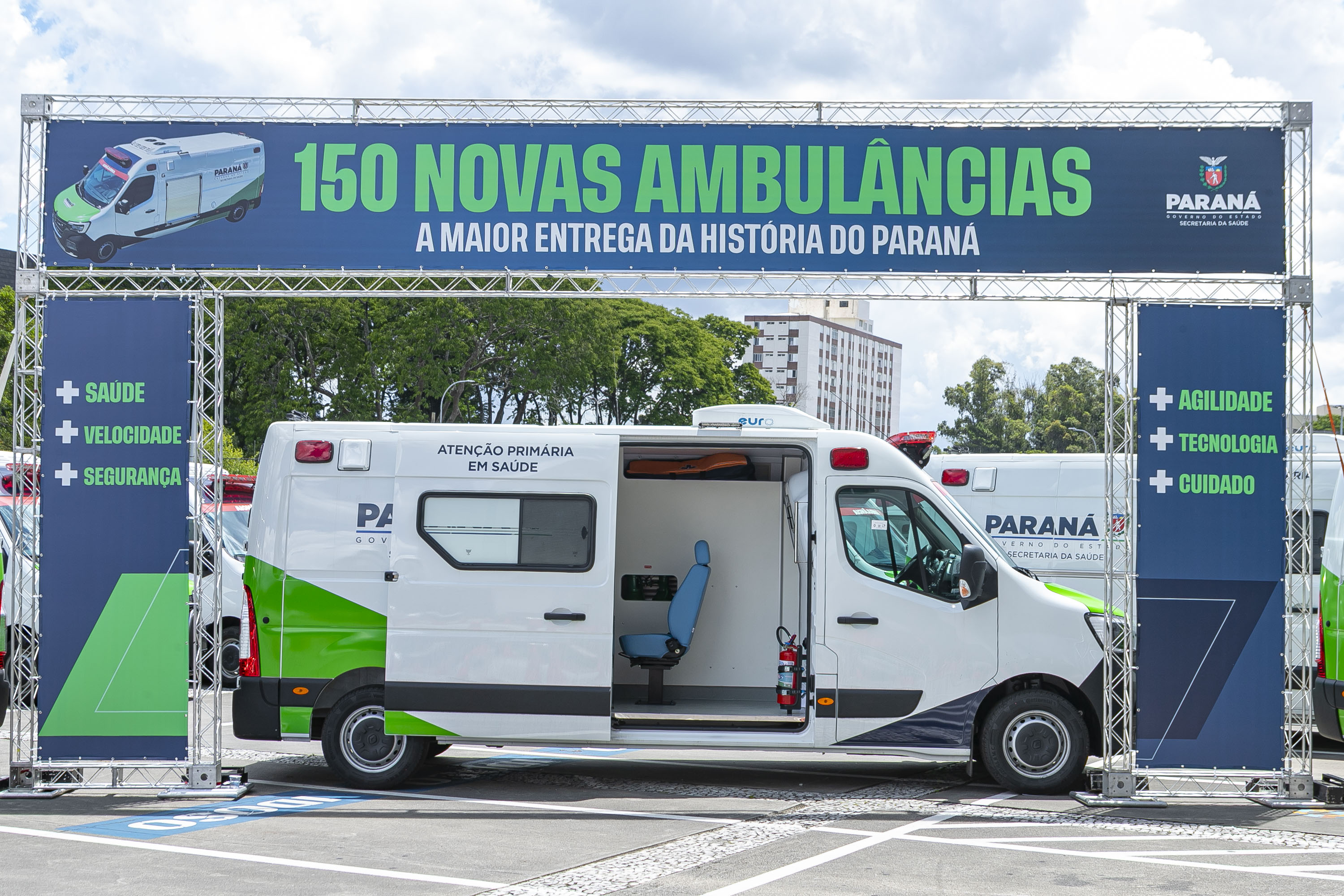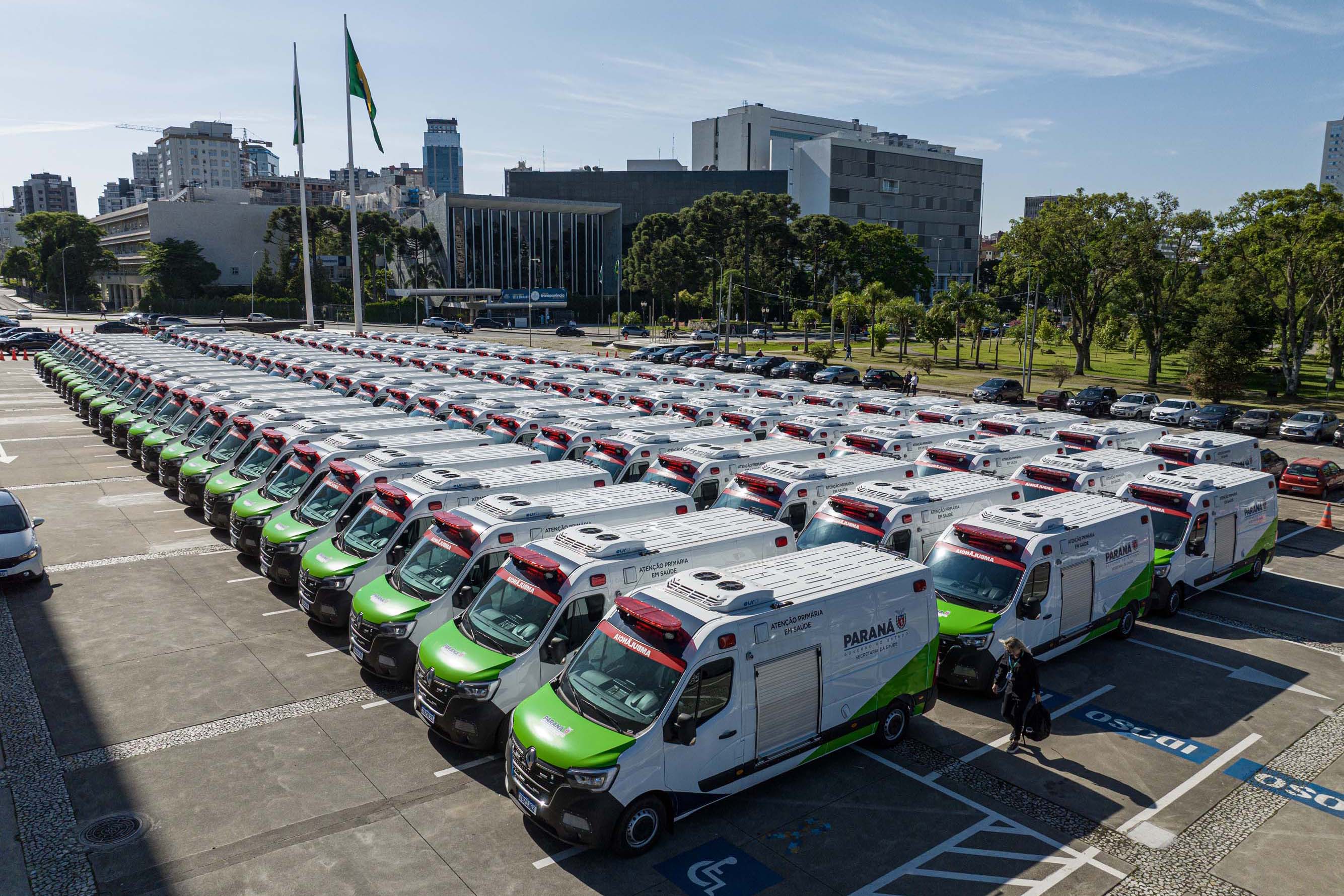 O Governo do Paraná entregou nesta quarta-feira (3) um novo reforço para a estrutura de urgência e emergência em todas as regiões do Estado: 150 ambulâncias equipadas como UTIs móveis, adquiridas com investimento de R$ 82,5 milhões da Secretaria de Estado da Saúde (Sesa). A cerimônia conduzida pelo governador Carlos Massa Ratinho Junior marcou o início da distribuição da nova frota, que vai ampliar a capacidade de resposta dos municípios e modernizar os serviços pré-hospitalares.