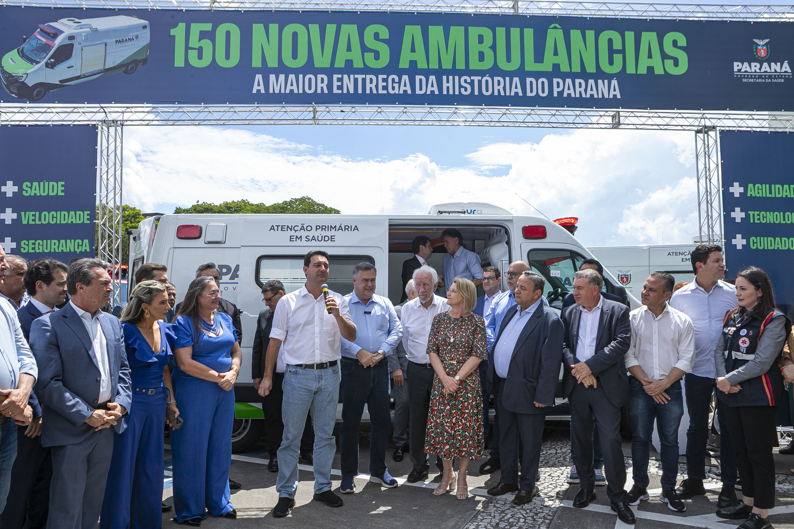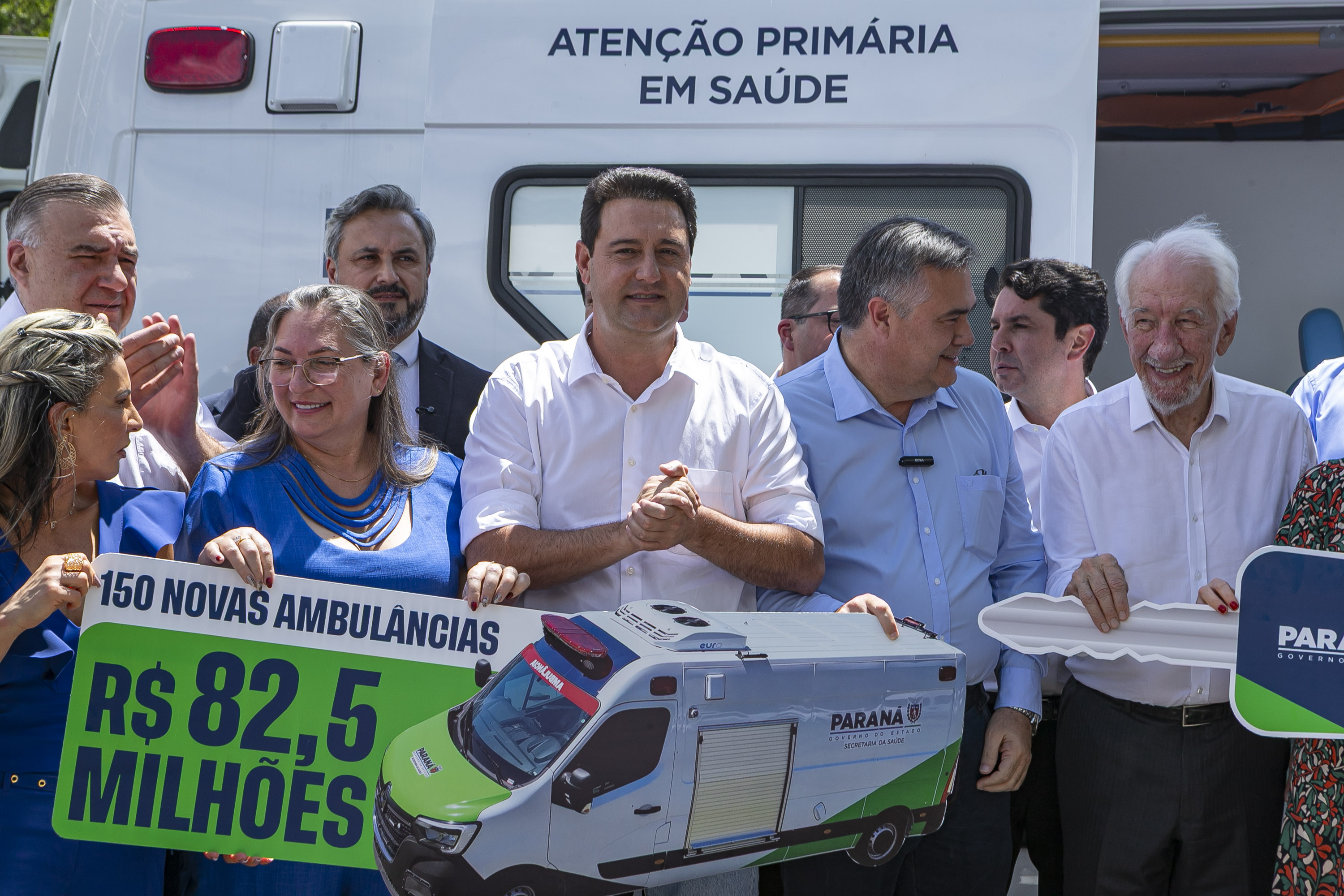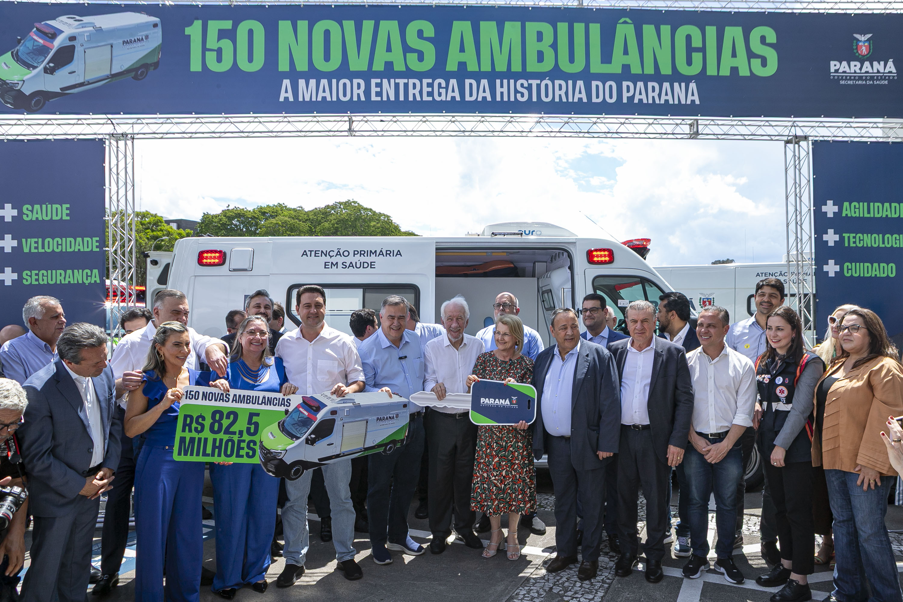 O Governo do Paraná entregou nesta quarta-feira (3) um novo reforço para a estrutura de urgência e emergência em todas as regiões do Estado: 150 ambulâncias equipadas como UTIs móveis, adquiridas com investimento de R$ 82,5 milhões da Secretaria de Estado da Saúde (Sesa). A cerimônia conduzida pelo governador Carlos Massa Ratinho Junior marcou o início da distribuição da nova frota, que vai ampliar a capacidade de resposta dos municípios e modernizar os serviços pré-hospitalares.