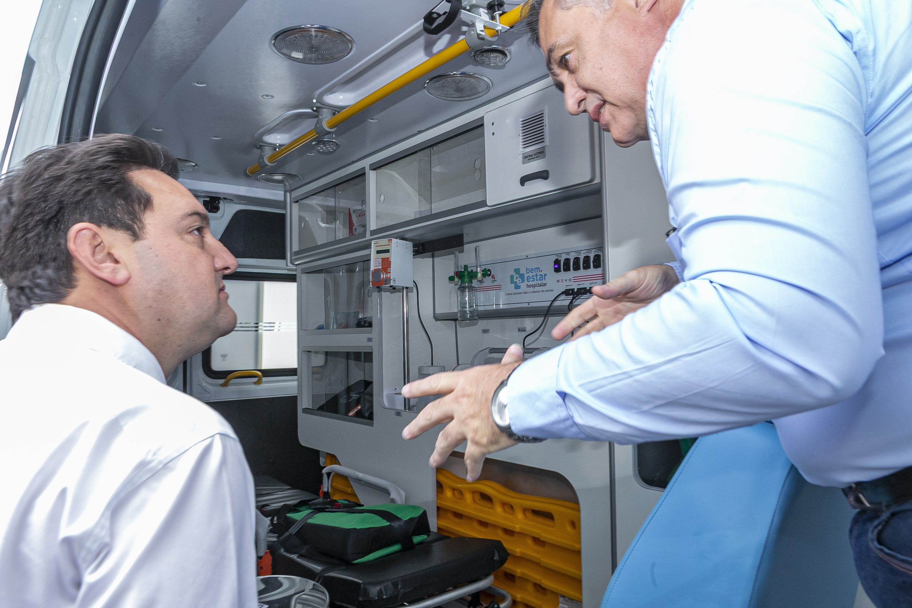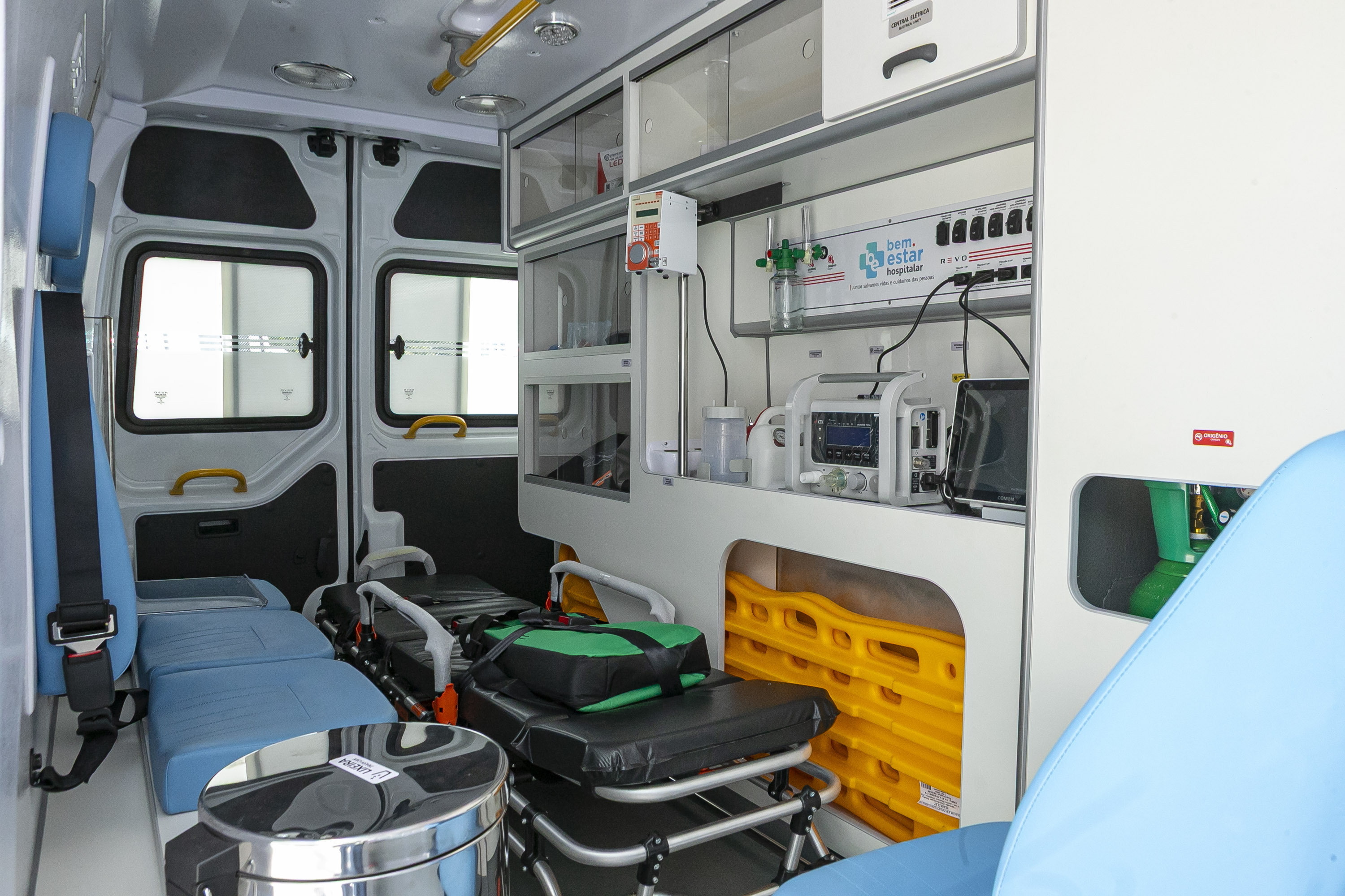 VEÍCULOS – Com valor unitário de R$ 550 mil, as ambulâncias são equipadas com tecnologia avançada e estrutura completa para atuação como UTIs móveis. Cada veículo acompanha ventilador mecânico, monitor cardíaco, desfibrilador, oxímetro portátil, bomba infusora, aspirador portátil e cadeira de rodas, permitindo que os municípios qualifiquem salas de estabilização e aprimorem o atendimento pré-hospitalar. Entre as inovações, destaca-se o acesso lateral aos cilindros de oxigênio, que facilita o manejo e melhora o fluxo de trabalho das equipes.