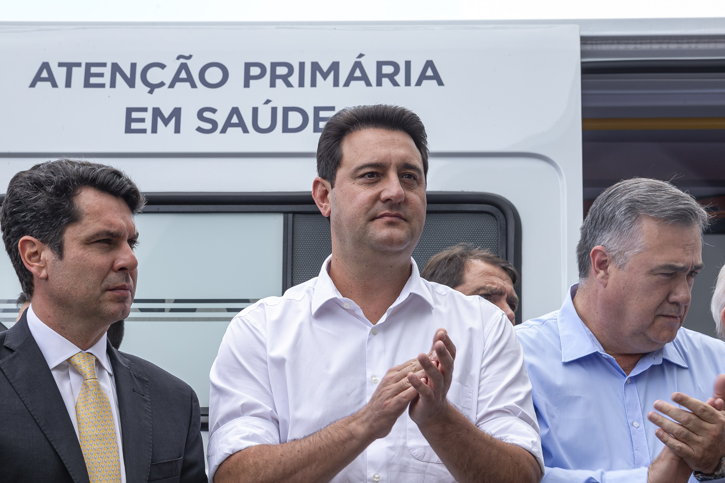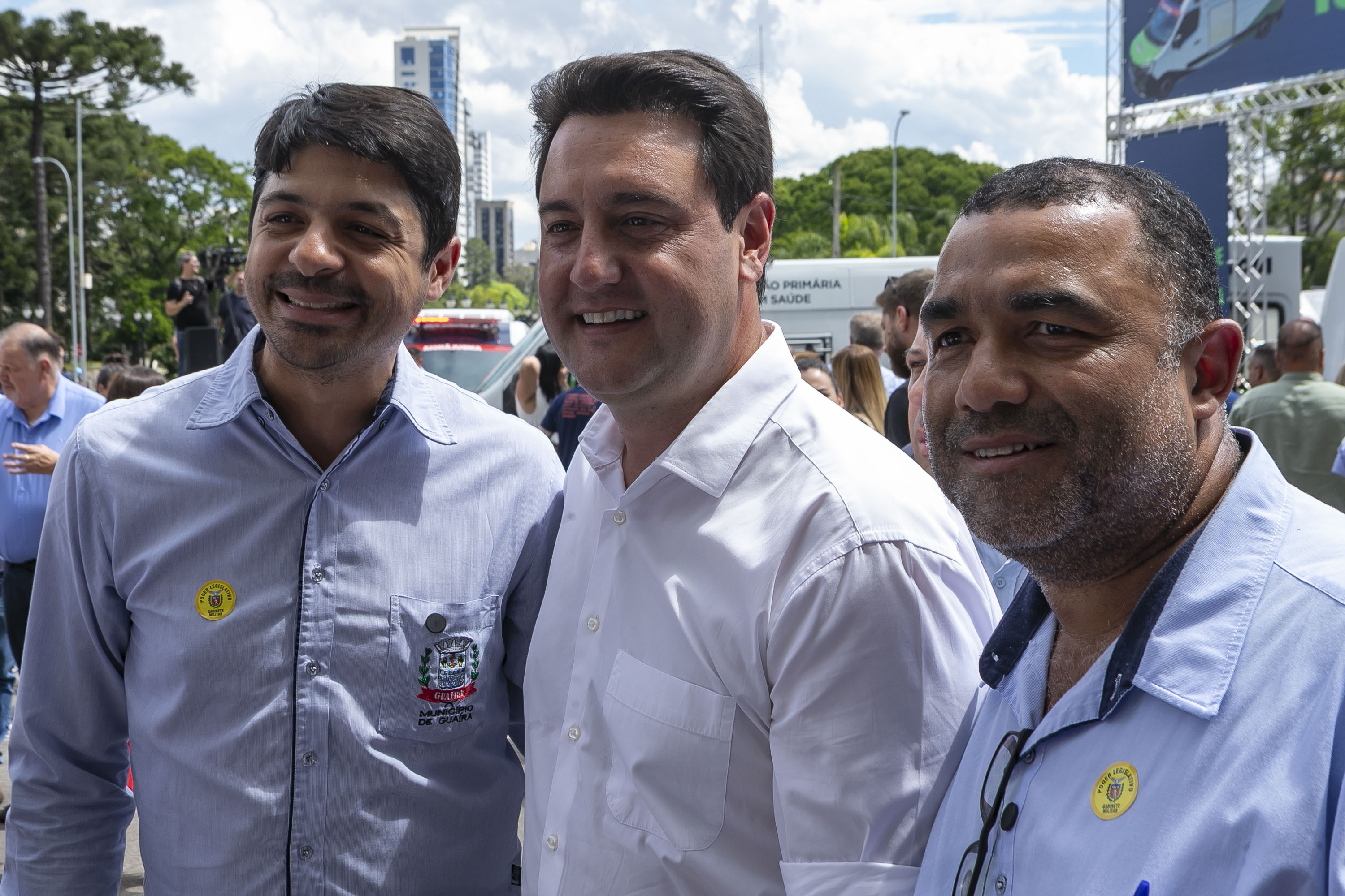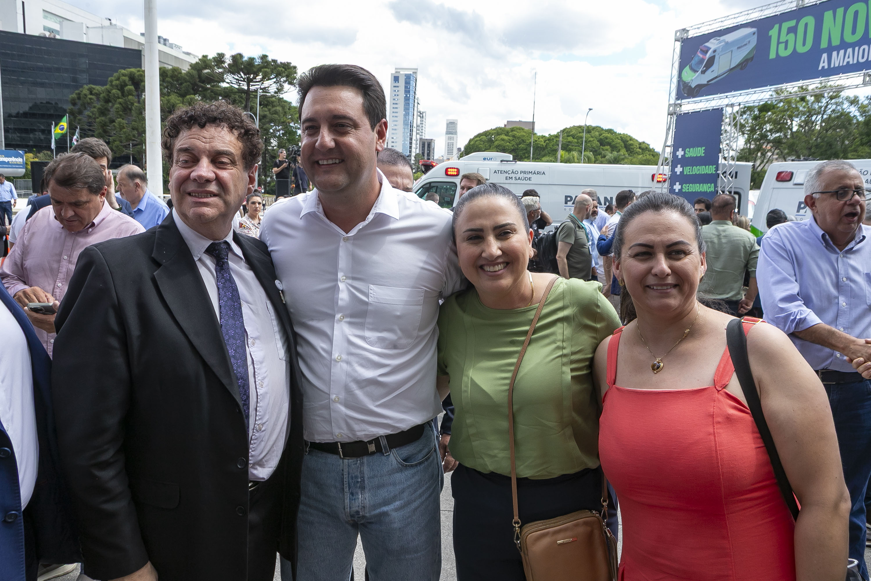 PRESENÇAS – Também participaram da entrega o vice-governador do Paraná, Darci Piana; o chefe da Casa Civil, João Carlos Ortega; o secretário das Cidades, Guto Silva; o secretário da Agricultura e do Abastecimento, Marcio Nunes; o secretário do Turismo, Leonaldo Paranhos; o subchefe da Casa Civil, Lúcio Tasso; o diretor-geral da Secretaria da Saúde, Cesar Neves; o presidente da Assembleia Legislativa do Paraná, deputado estadual Alexandre Curi; o líder do Governo na Assembleia Legislativa, deputado estadual Hussein Bakri; a vice-presidente da Comissão de Saúde Pública da Assembleia Legislativa, deputada estadual Márcia Huçulak; os deputados estaduais Soldado Adriano José, Adão Litro, Alexandre Amaro, Wilmar Reichembach, Luiz Fernando Guerra, Alisson Wandscheer, Flávia Francischini e Fábio Oliveira; e prefeitos de todas as regiões.