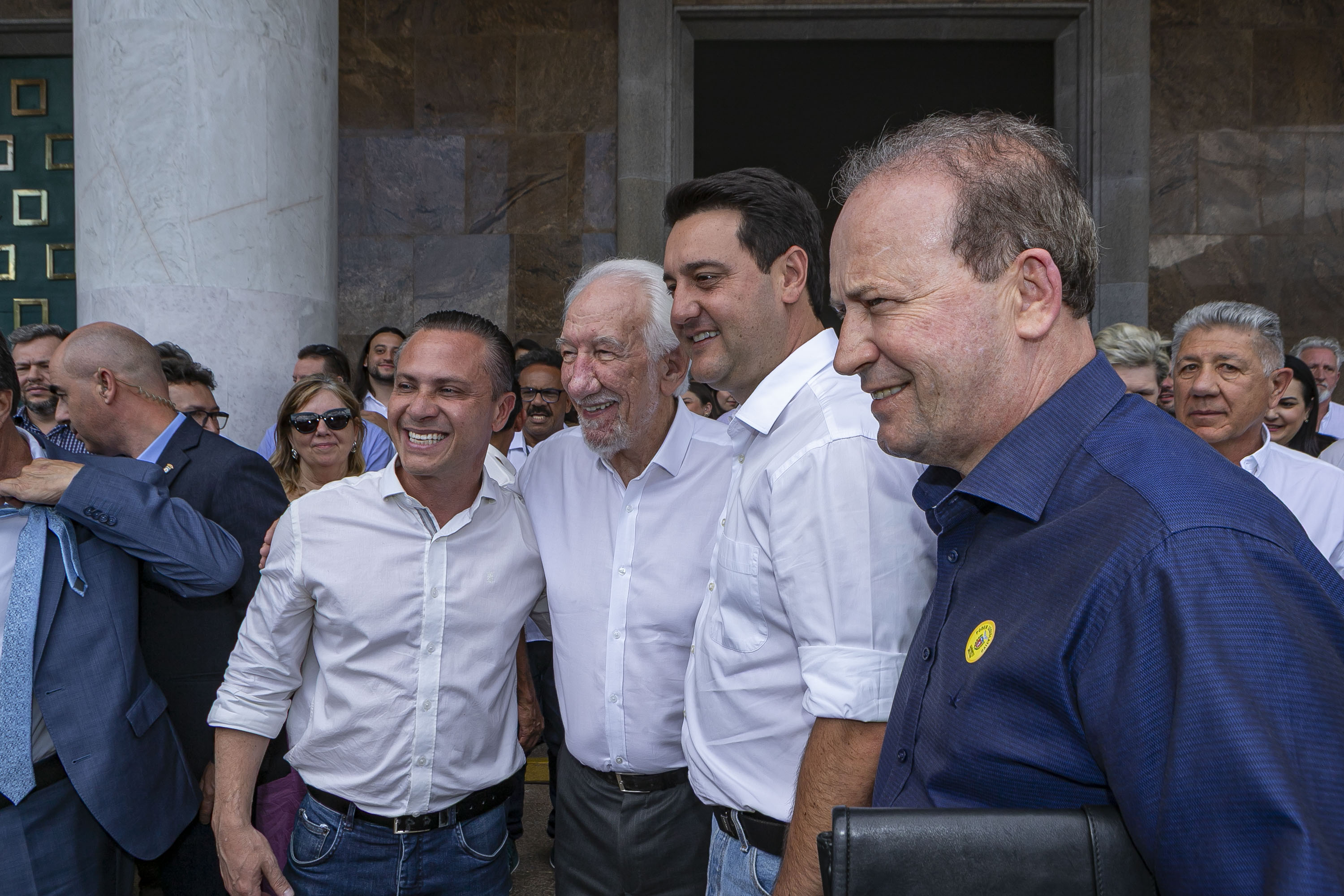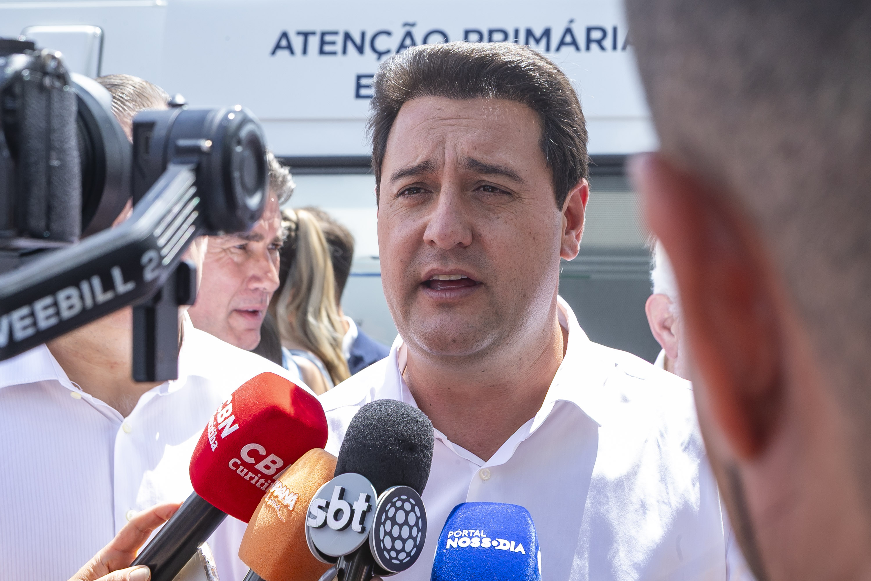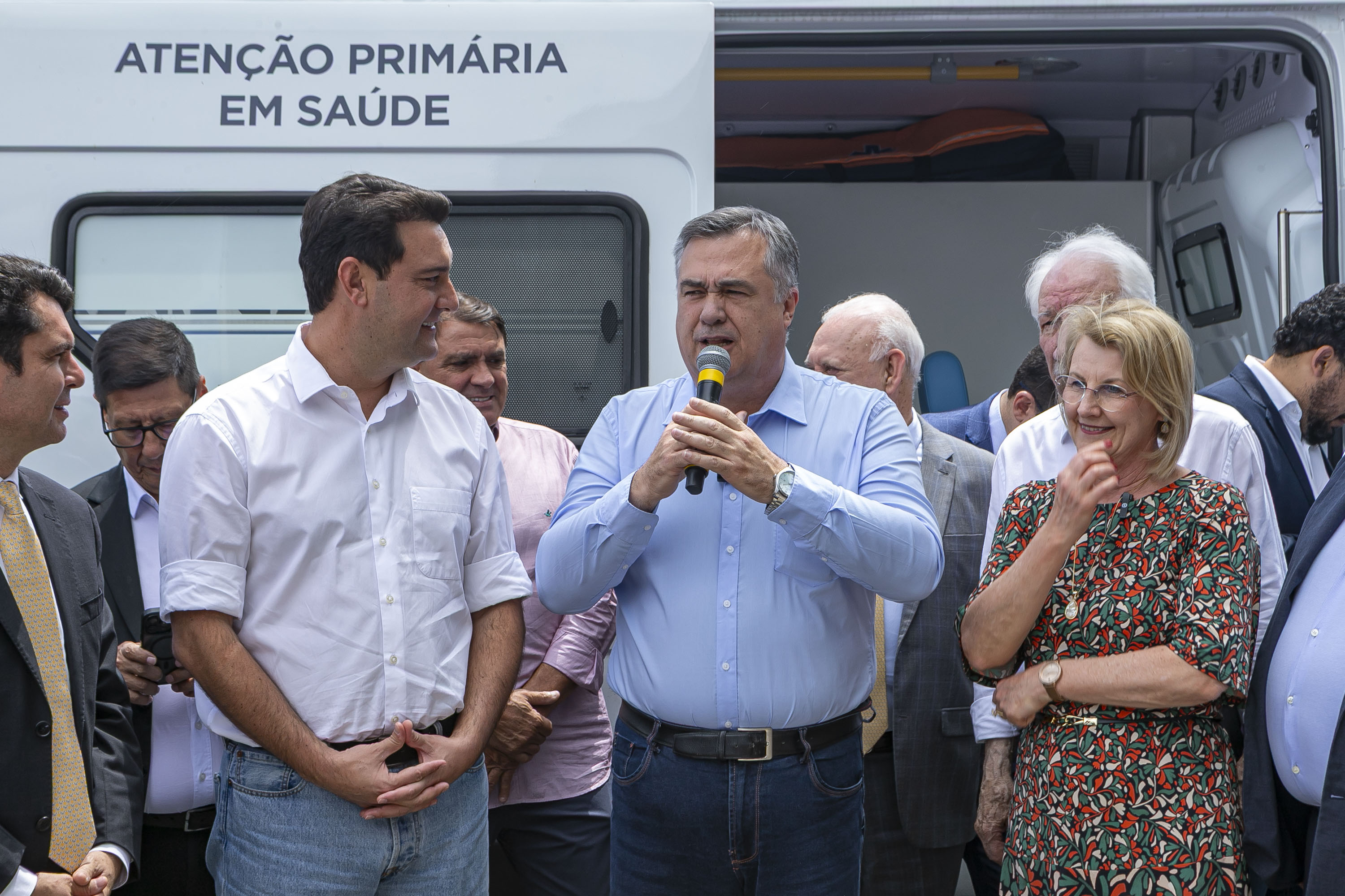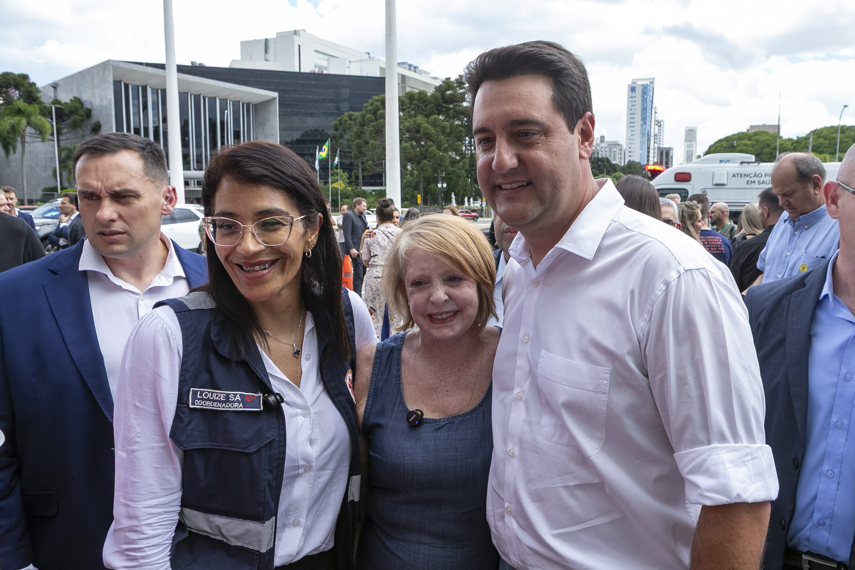 PRESENÇAS – Também participaram da entrega o vice-governador do Paraná, Darci Piana; o chefe da Casa Civil, João Carlos Ortega; o secretário das Cidades, Guto Silva; o secretário da Agricultura e do Abastecimento, Marcio Nunes; o secretário do Turismo, Leonaldo Paranhos; o subchefe da Casa Civil, Lúcio Tasso; o diretor-geral da Secretaria da Saúde, Cesar Neves; o presidente da Assembleia Legislativa do Paraná, deputado estadual Alexandre Curi; o líder do Governo na Assembleia Legislativa, deputado estadual Hussein Bakri; a vice-presidente da Comissão de Saúde Pública da Assembleia Legislativa, deputada estadual Márcia Huçulak; os deputados estaduais Soldado Adriano José, Adão Litro, Alexandre Amaro, Wilmar Reichembach, Luiz Fernando Guerra, Alisson Wandscheer, Flávia Francischini e Fábio Oliveira; e prefeitos de todas as regiões.