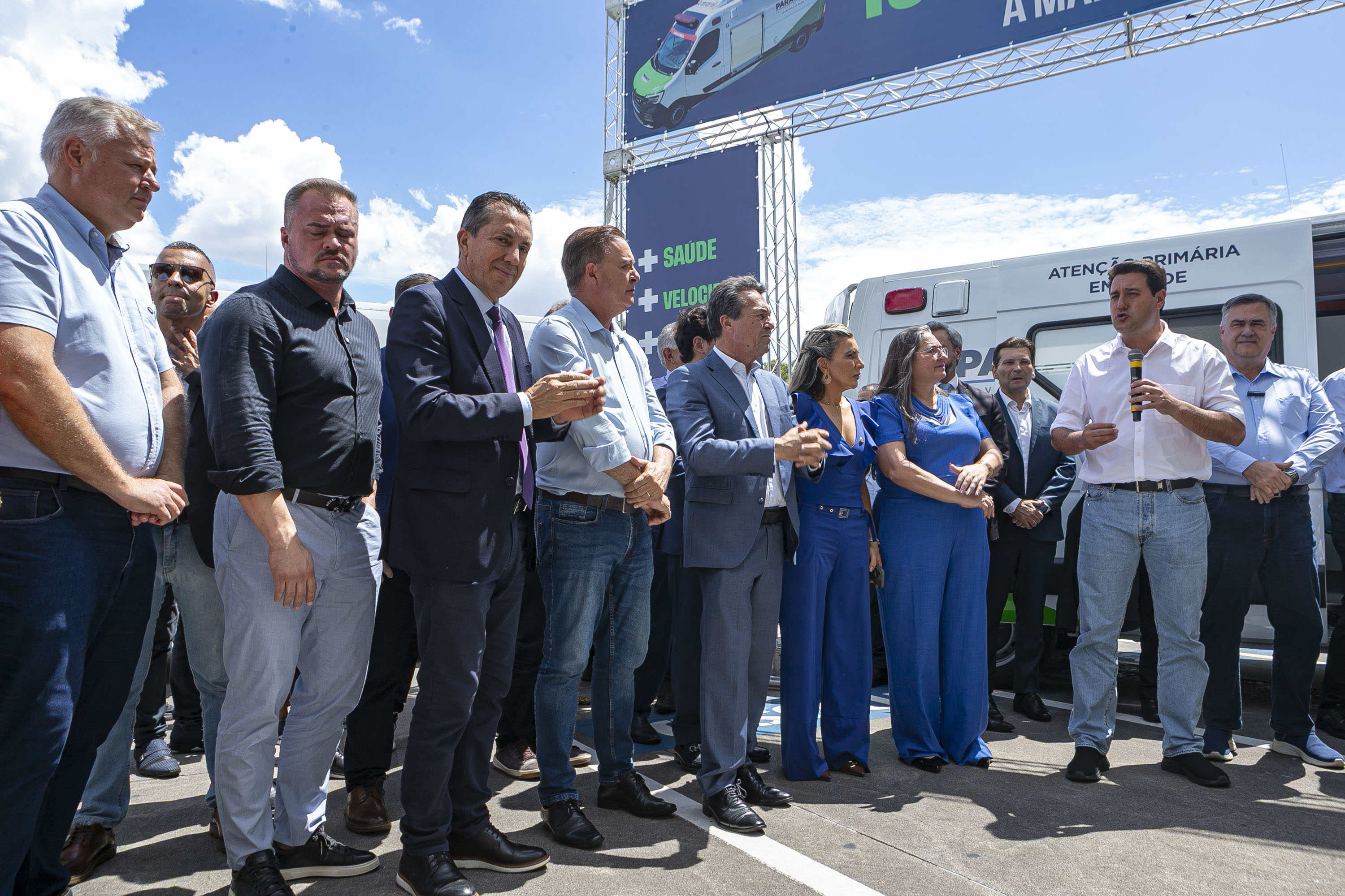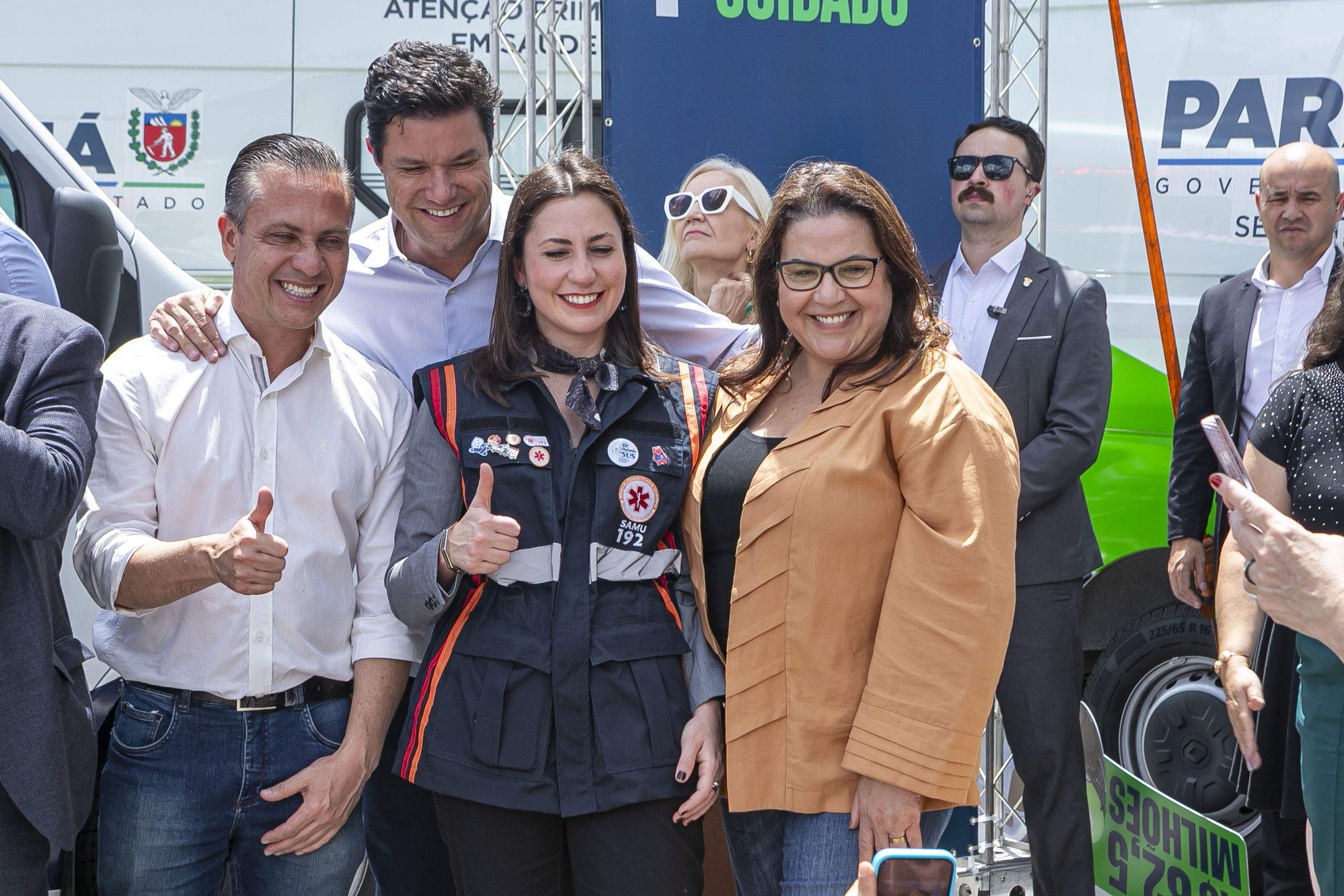 “Hoje é uma entrega histórica para o Paraná. É o maior reforço da história com UTIs móveis. Estamos entregando ambulâncias totalmente equipadas, muito mais avançadas que as convencionais, e que garantem saúde e segurança no primeiro atendimento, seja num acidente de trânsito, num infarto ou numa emergência dentro de casa. É um motivo de muita alegria”, afirmou o governador Ratinho Junior.