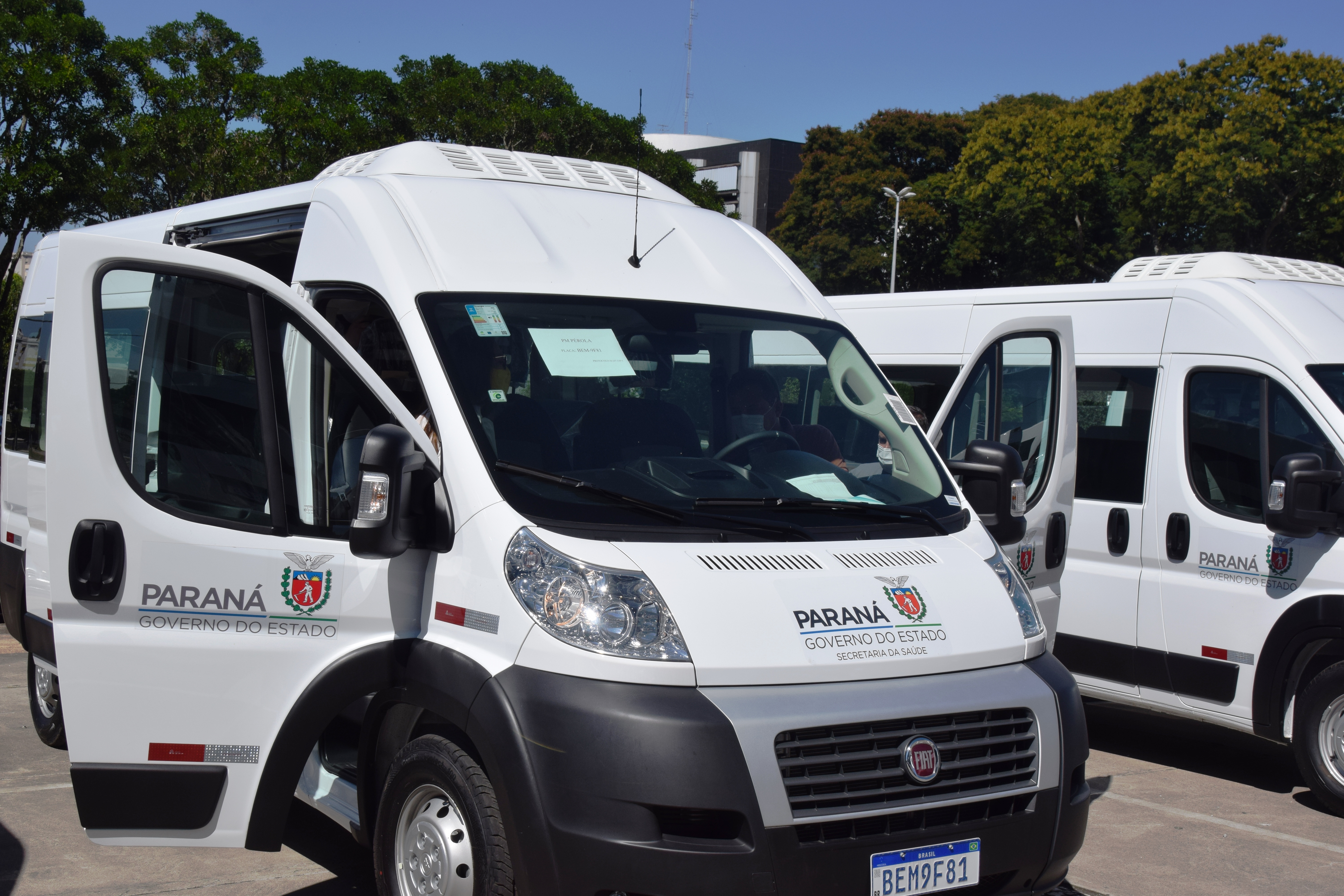 O Governo do Estado deu prosseguimento ao processo de modernização da frota de veículos que atende o sistema público de saúde do Paraná. O governador Carlos Massa Ratinho Junior entregou nesta terça-feira (23), em ato no Palácio Iguaçu, 46 vans que vão auxiliar no transporte de pacientes em 45 municípios paranaenses, indicados por meio de emendas parlamentares da bancada estadual. O investimento com recursos próprios da Secretaria de Estado da Saúde foi de R$ 7,82 milhões.