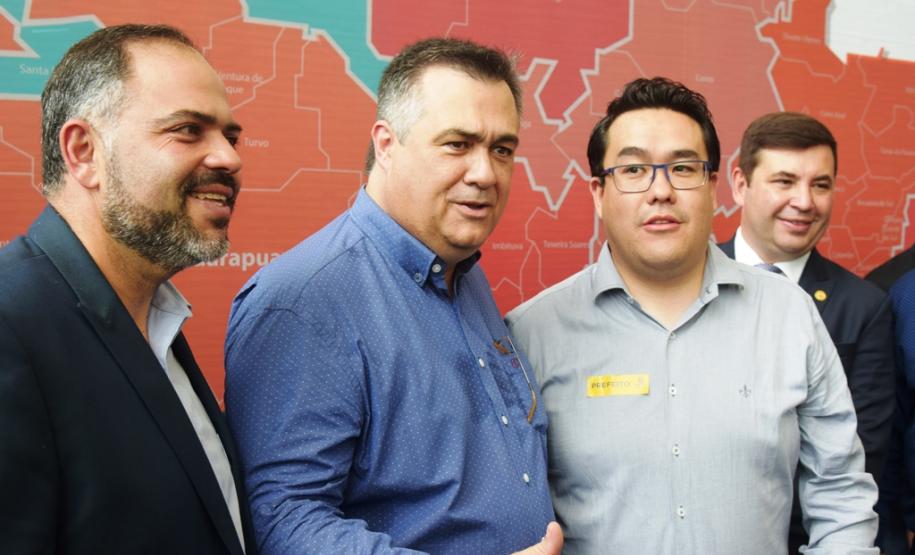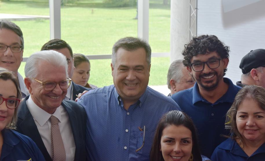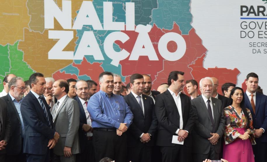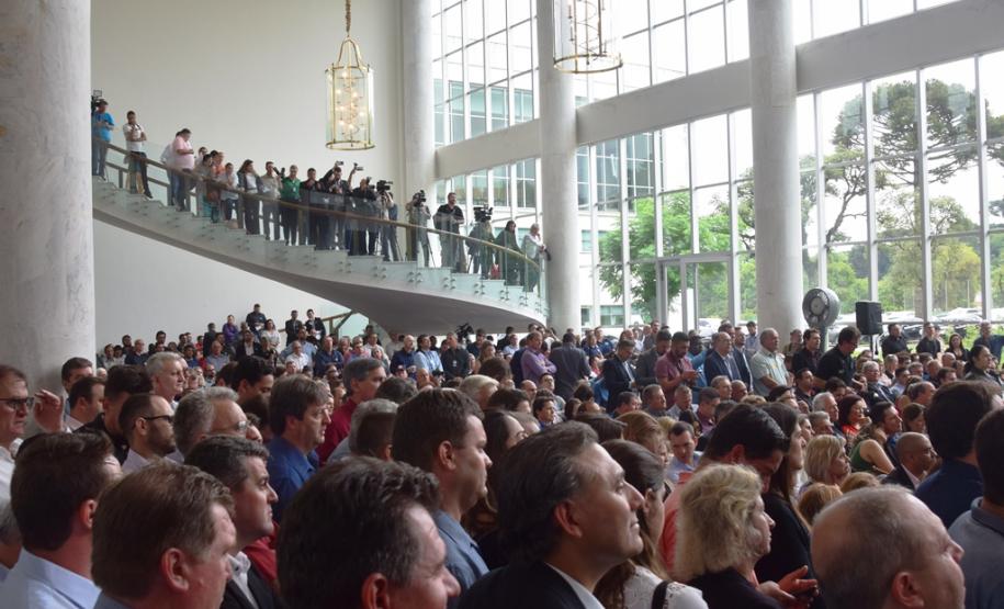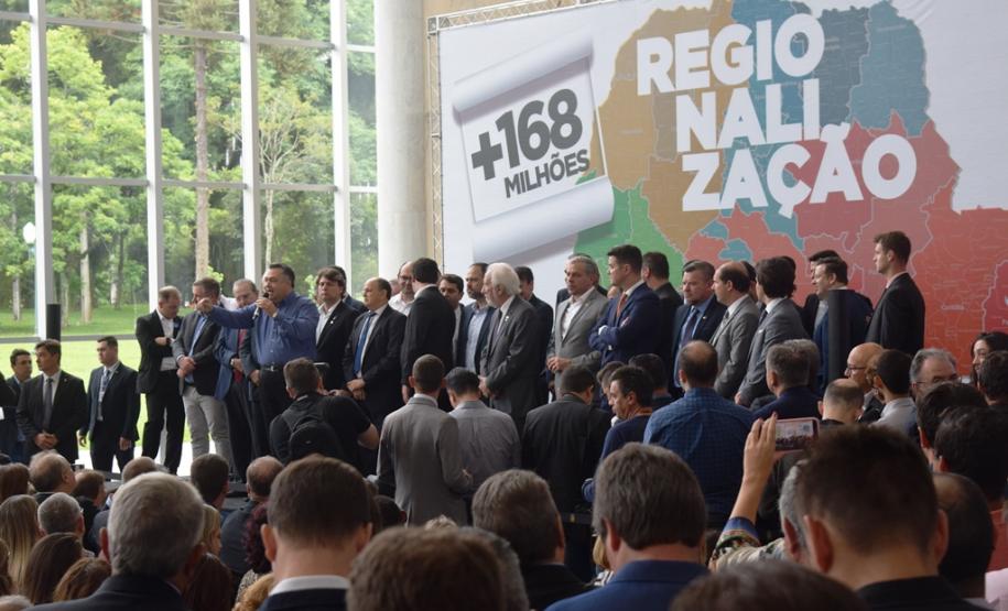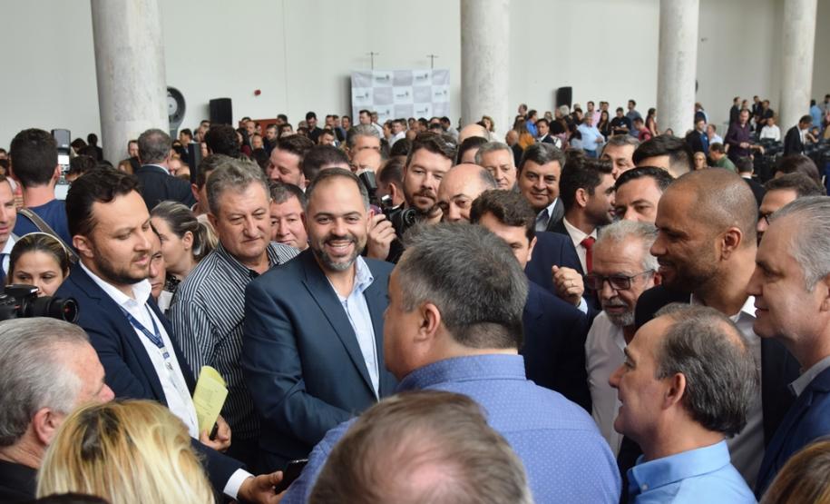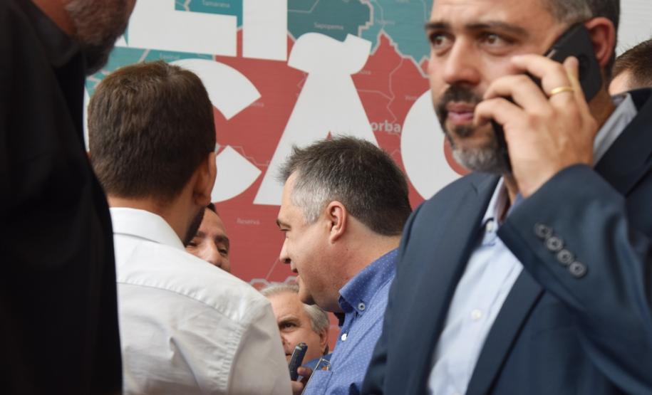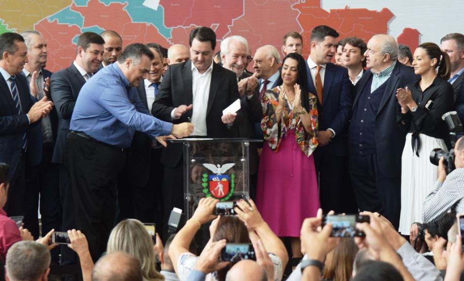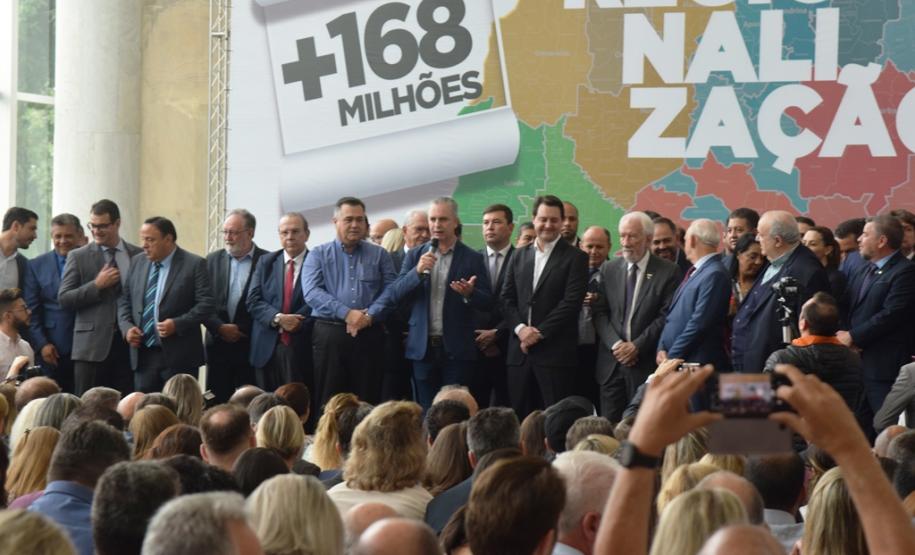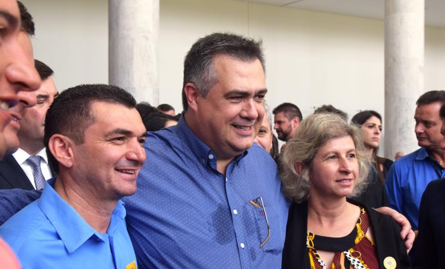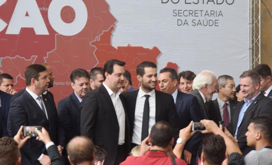 PRESENÇAS – Estiveram presentes na cerimônia o vice-governador Darci Piana; o chefe da Casa Civil, Guto Silva; o secretário de Desenvolvimento Sustentável e Turismo, Márcio Nunes; o presidente da Comec, Gilson Santos; o superintendente de Inovação da Casa Civil, Henrique Domakoski; o diretor-presidente da Invest Paraná, Eduardo Bekin; os deputados estaduais Hussein Bakri (líder do Governo), Alexandre Curi, Ademar Traiano, Homero Marchese, Galo, Cobra Repórter, Jonas Guimarães, Doutor Batista, Delegado Jacovós, Wilmar Reichembach, Tercílio Turini, Marcel Micheletto, Luiz Cláudio Romanelli, Mabel Canto, Cantora Mara Lima, Gilson de Souza, Alexandre Amaro, Nelson Justus, Delegado Fernando, Márcio Pacheco, Luiz Fernando Guerra, Emerson Bacil, Anibelli Neto, Do Carmo, Artagão Júnior, Soldado Adriano José, Paulo Litro, Francisco Buhrer, Ricardo Arruda, Cristina Silvestri, Coronel Lee e Nelson Luersen; vereadores, secretários municipais de saúde e cerca de 200 prefeitos e lideranças regionais.