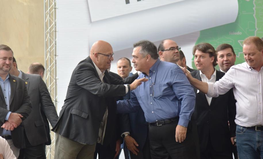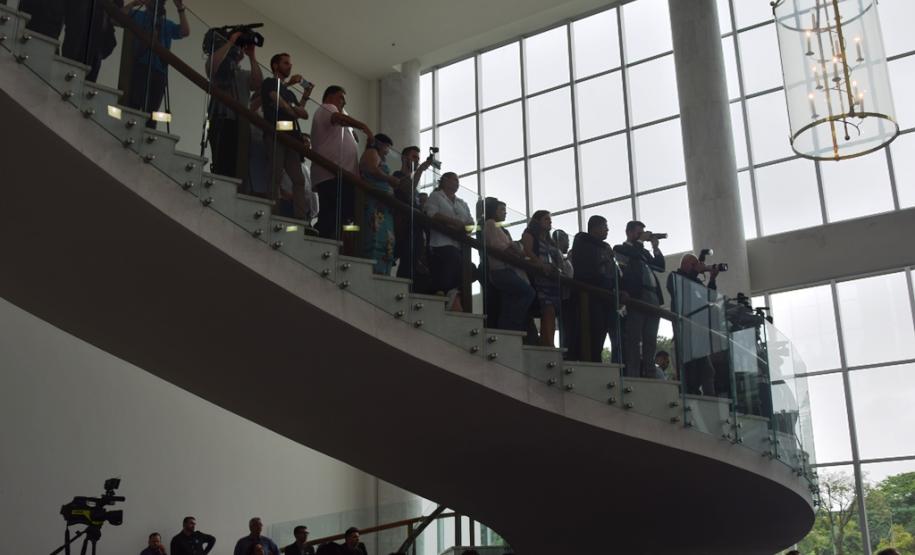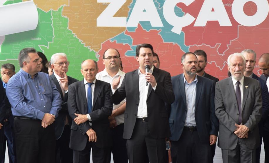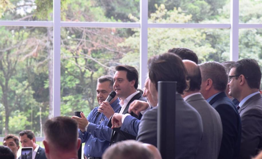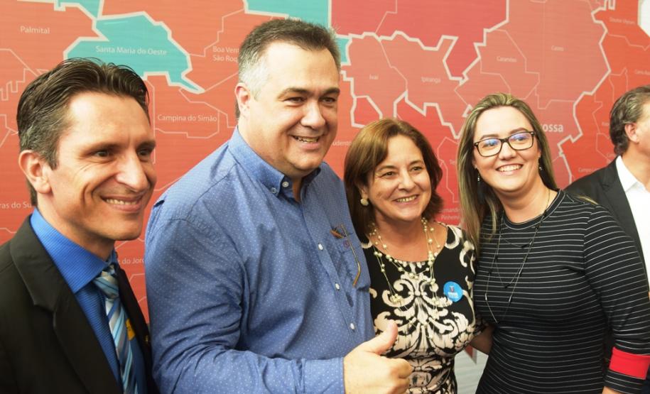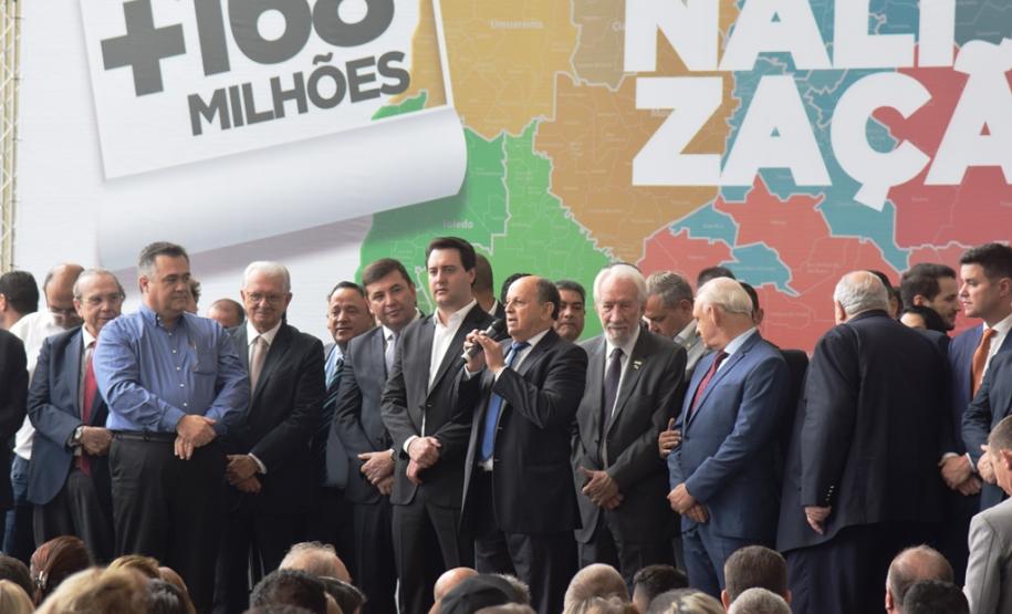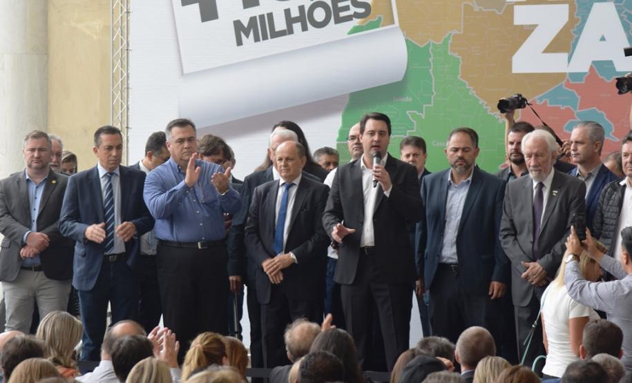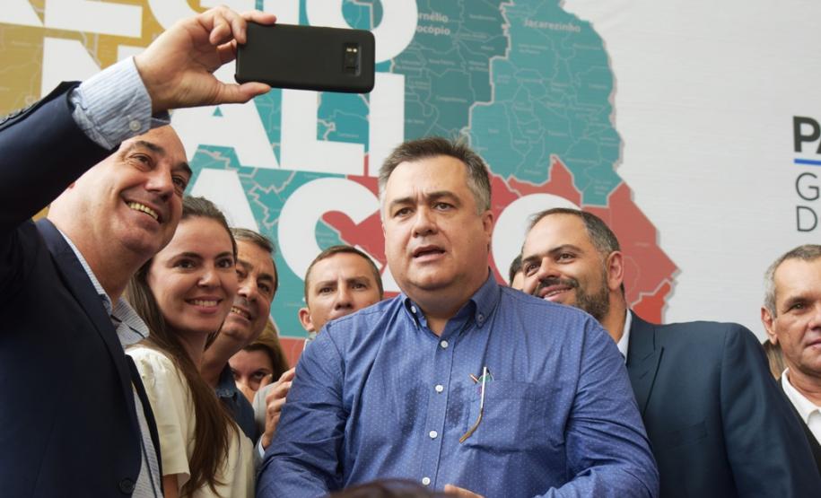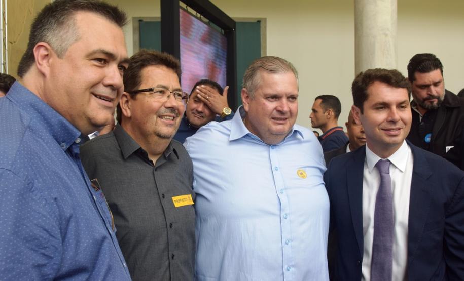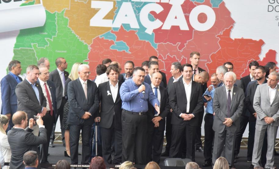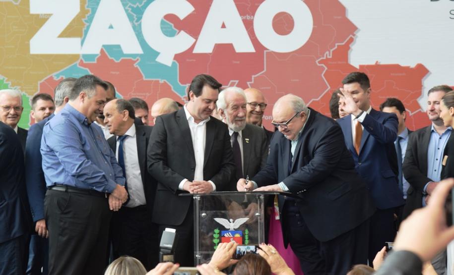 PRESENÇAS – Estiveram presentes na cerimônia o vice-governador Darci Piana; o chefe da Casa Civil, Guto Silva; o secretário de Desenvolvimento Sustentável e Turismo, Márcio Nunes; o presidente da Comec, Gilson Santos; o superintendente de Inovação da Casa Civil, Henrique Domakoski; o diretor-presidente da Invest Paraná, Eduardo Bekin; os deputados estaduais Hussein Bakri (líder do Governo), Alexandre Curi, Ademar Traiano, Homero Marchese, Galo, Cobra Repórter, Jonas Guimarães, Doutor Batista, Delegado Jacovós, Wilmar Reichembach, Tercílio Turini, Marcel Micheletto, Luiz Cláudio Romanelli, Mabel Canto, Cantora Mara Lima, Gilson de Souza, Alexandre Amaro, Nelson Justus, Delegado Fernando, Márcio Pacheco, Luiz Fernando Guerra, Emerson Bacil, Anibelli Neto, Do Carmo, Artagão Júnior, Soldado Adriano José, Paulo Litro, Francisco Buhrer, Ricardo Arruda, Cristina Silvestri, Coronel Lee e Nelson Luersen; vereadores, secretários municipais de saúde e cerca de 200 prefeitos e lideranças regionais.