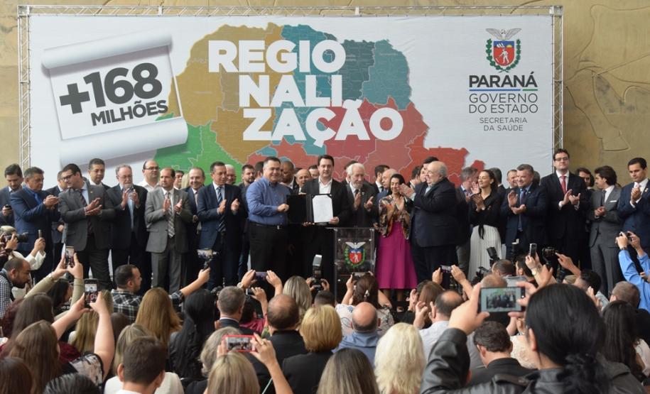 Para fechar o ano, o Governo, por meio da Secretaria de Estado da Saúde (Sesa), autorizou nesta quarta-feira (11), em cerimônia no Palácio Iguaçu, a liberação de R$ 168 milhões em investimentos que beneficiam 297 municípios paranaenses na área da saúde. É o maior pacote financeiro do ano.