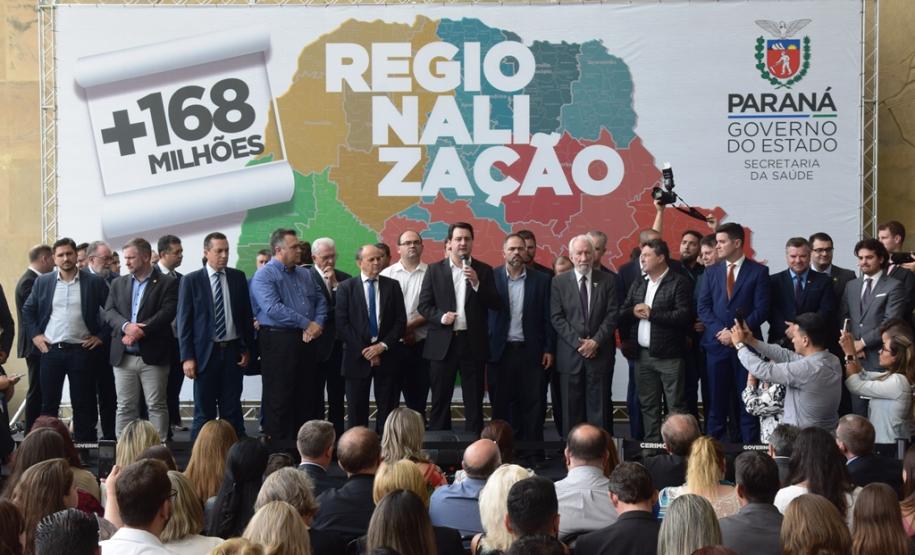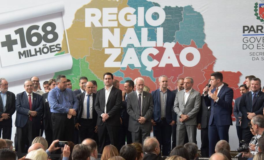 De acordo com o secretário de Estado da Saúde, Beto Preto, a meta do Governo é qualificar e melhorar os serviços em todos os municípios do Estado. “É o compromisso do governador levar ações de saúde, obras e equipamentos para todas as regiões do Paraná. Hoje é assinado aqui a liberação de recursos para quase 300 municípios de um total de 399. São ações estruturantes, reformas, novas unidades básicas de saúde, equipamentos, isso tudo é o compromisso do governador com a regionalização da saúde, é olhar para todo Estado para que as pessoas possam, através de serviços estruturados, receber a saúde mais próximo da sua casa”, disse.