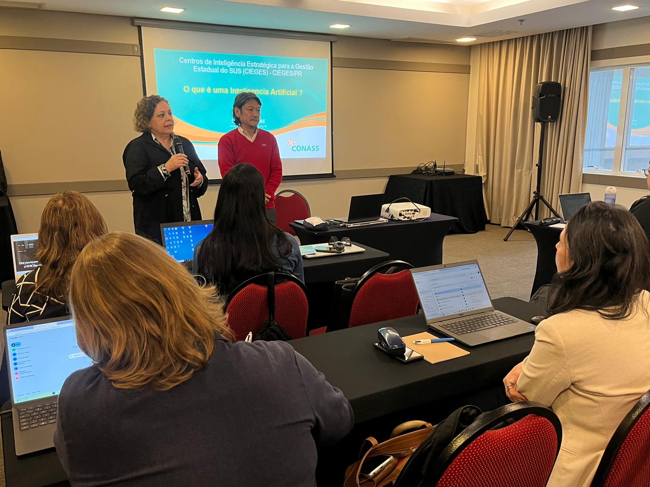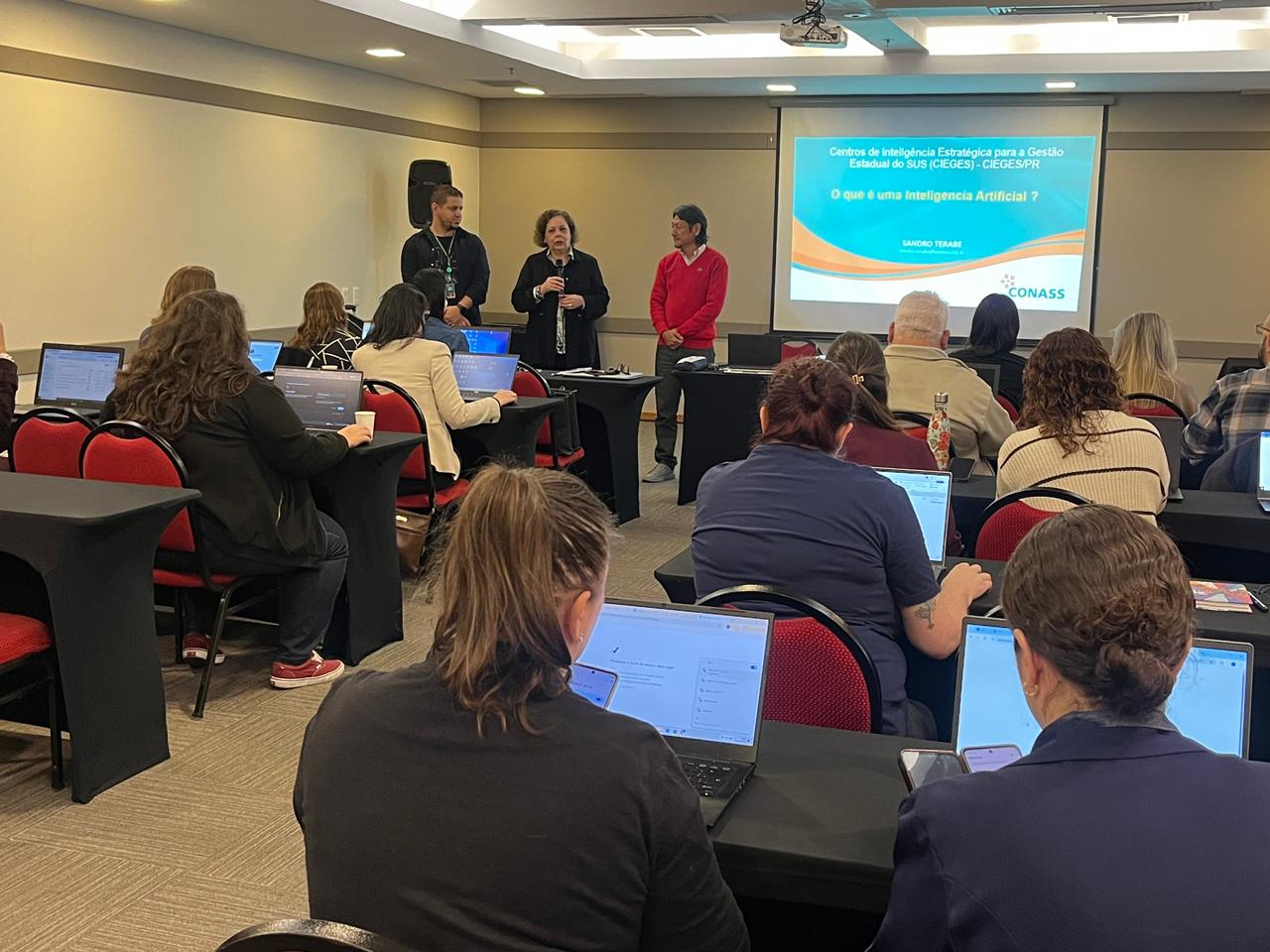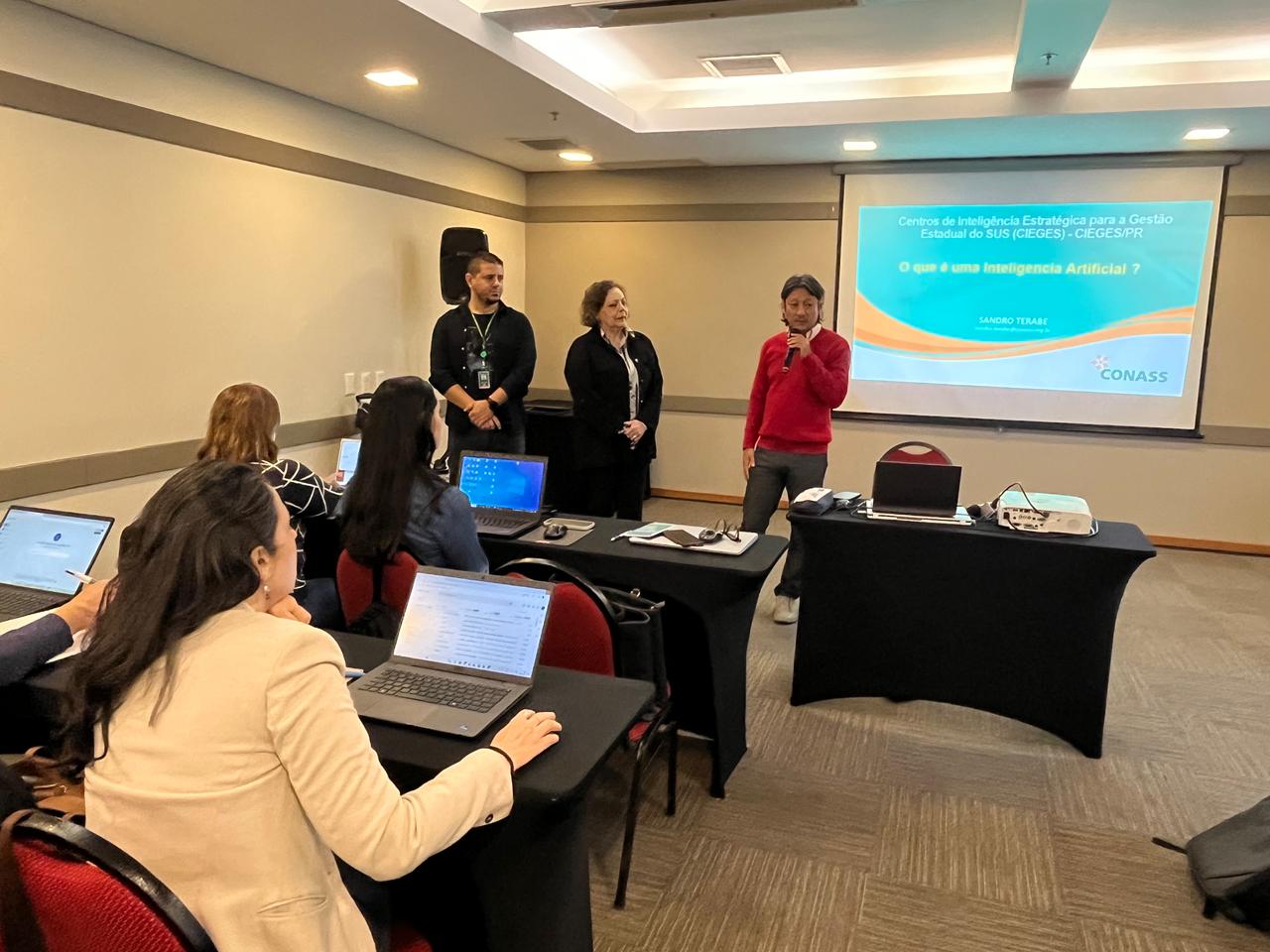 CIEGES — O curso utilizou a expertise do Centro de Inteligência Estratégica para a Gestão Estadual do SUS (Cieges/Conass), estrutura criada para organizar dados de saúde e produzir indicadores estratégicos que apoiam as decisões governamentais. O treinamento foi ministrado pelo gerente da Rede Cieges, Sandro Terabe, que introduz conceitos de IA em todo o País.