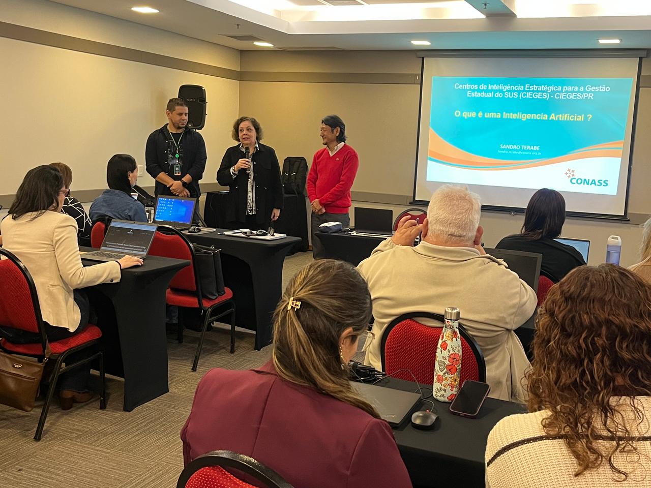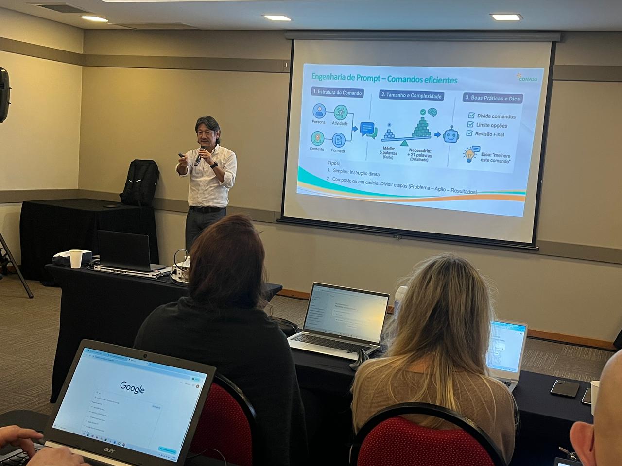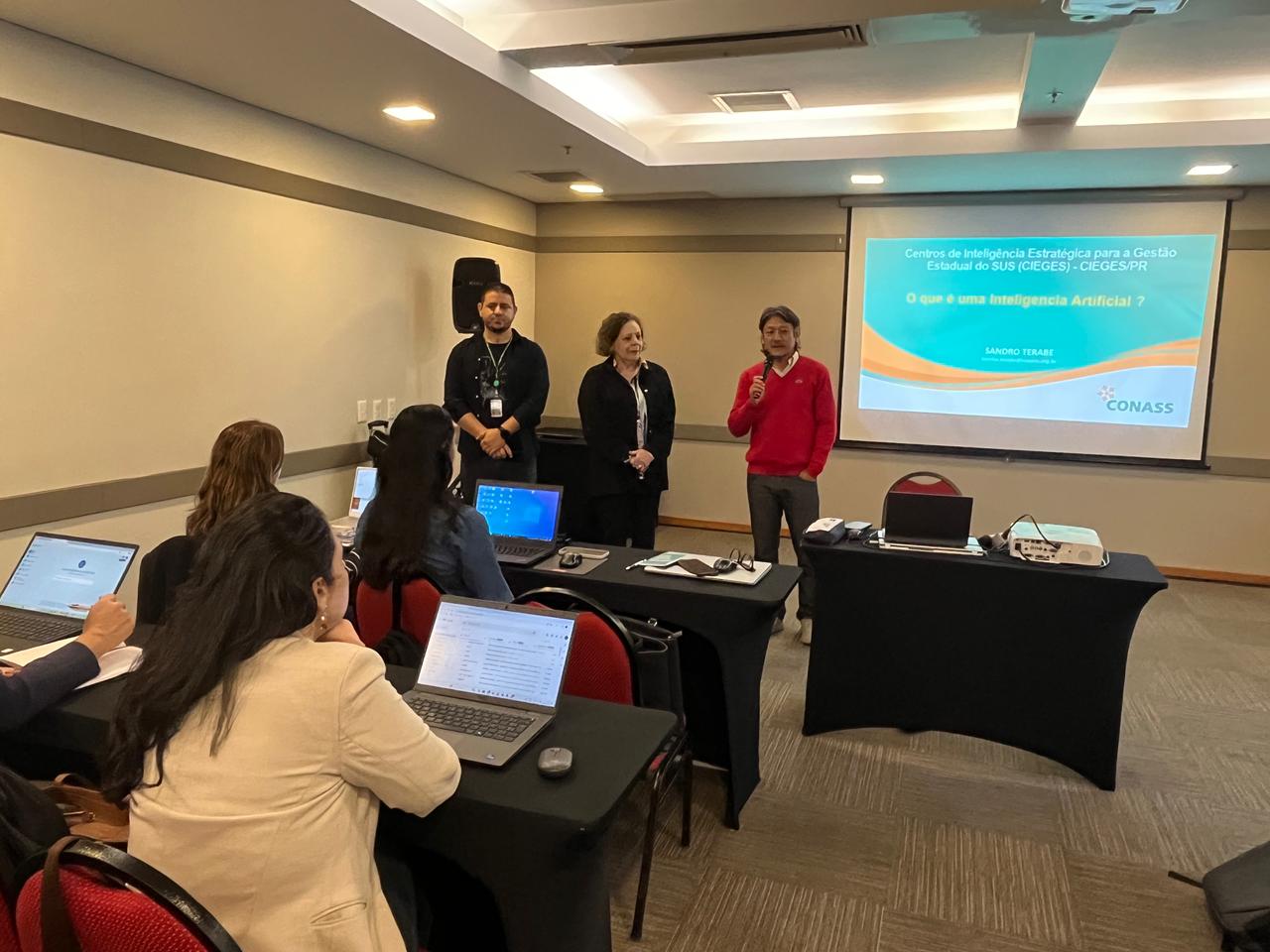 CIEGES — O curso utilizou a expertise do Centro de Inteligência Estratégica para a Gestão Estadual do SUS (Cieges/Conass), estrutura criada para organizar dados de saúde e produzir indicadores estratégicos que apoiam as decisões governamentais. O treinamento foi ministrado pelo gerente da Rede Cieges, Sandro Terabe, que introduz conceitos de IA em todo o País.