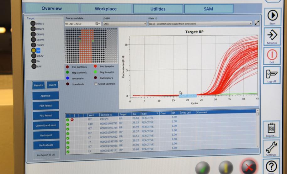 Um exemplo é o fornecimento dos tubos de coleta de sangue a vácuo para obtenção das amostras de pacientes em fase aguda das arboviroses (dengue, zika, chikungunya e febre amarela). Na área de produção de meios de cultura e reativos, o Lacen produz e distribui para todo o estado kits para meningite, kits para coletar suspeitas de coqueluche, o meio de transporte viral para as amostras de vírus respiratórios, suspeitas de sarampo e rubéola, entre outros.