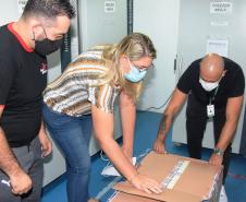 Foto: Américo Antonio/SESAMais uma leva de vacina Cominarty, produzida pela Pfizer/BioNTech, chegou ao Paraná nesta quinta-feira (3). O lote de 37.440 doses foi recebido às 13h20 no Aeroporto Internacional Afonso Pena, em São José dos Pinhais, na Região Metropolitana de Curitiba, e seguiu para conferência no Centro de Medicamentos do Paraná (Cemepar), onde chegou às 13h50. - Curitiba, 03/06/2021