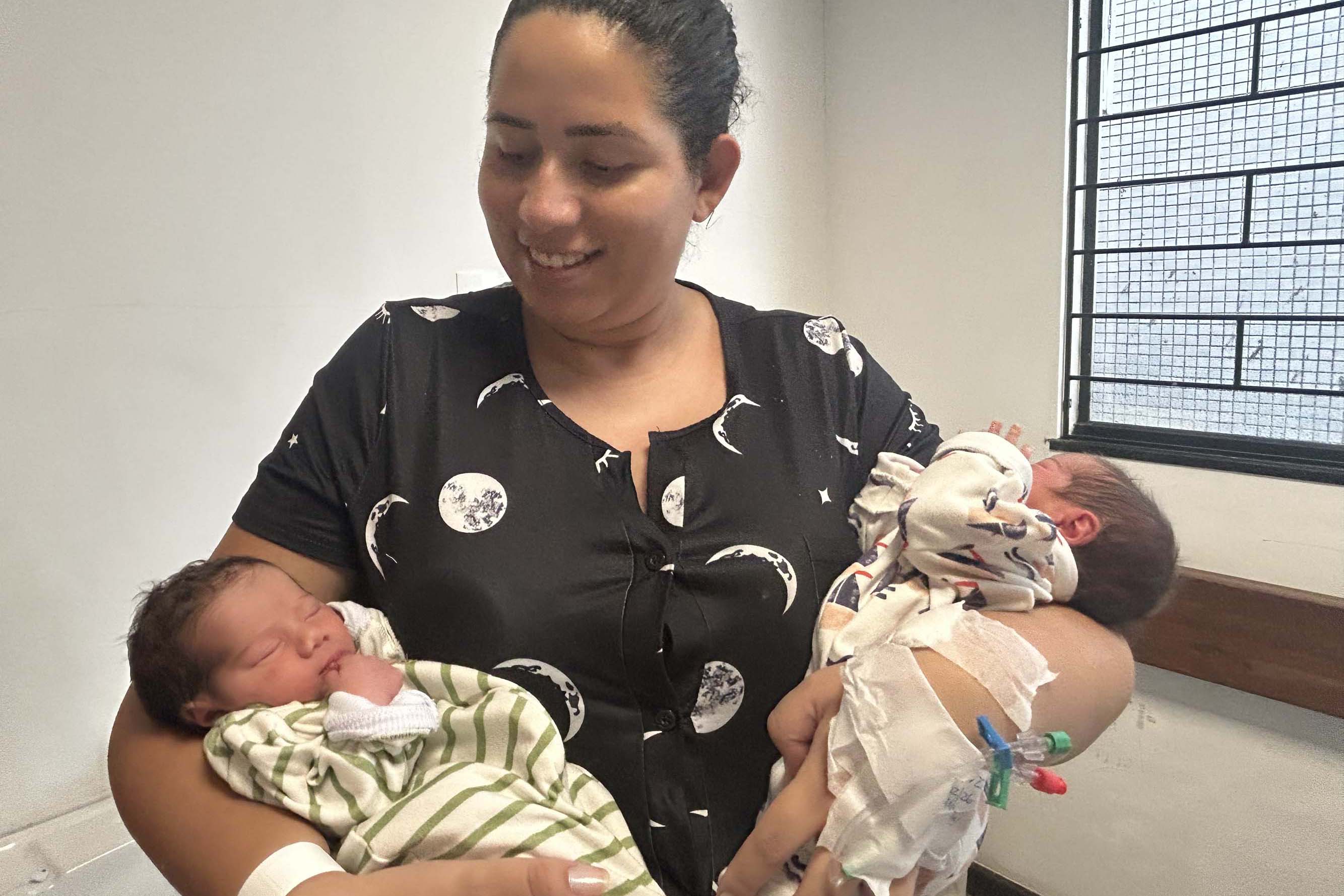 Nesta quarta-feira (04), os gêmeos Arthur e Cauã, de apenas dois dias de vida, receberam no Hospital do Trabalhador, em Curitiba, a dose única do Nirsevimabe. Os meninos estavam dentro dos critérios estabelecidos pelo Ministério da Saúde para receber medicamento. Para Cibele dos Santos, mãe dos bebês, o momento é muito importante e deixá-los mais seguros, traz tranquilidade. “Para nós, mães, nesse momento toda segurança é importante. Sabendo que é uma doença que causa tantos internamentos, ter essa segurança dá mais uma paz no coração. E agora saúde para eles”, ressaltou.