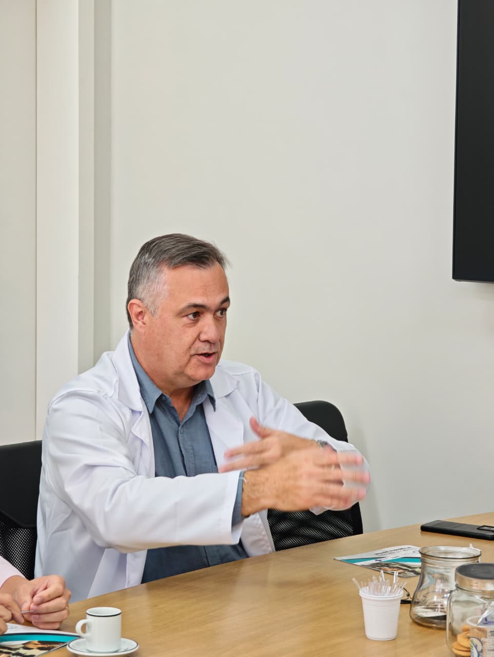 PARTICIPANTES – Também participaram da reunião o diretor-superintendente do Complexo Hospitalar do Trabalhador (CHT), Guilherme Graziani, a vice-prefeita de Paranaguá, Fabiana Parro, a superintendente de projetos na captação de recursos de Paranaguá, Gabriela Setoyama e o oftalmologista e diretor da Clínica Médico de Olhos, Dr. Hamilton Moreira.