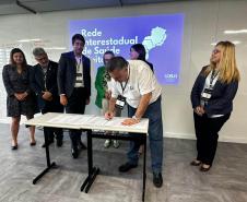 PRESENÇAS – Participaram da apresentação o diretor-geral da Sesa, César Neves, os secretários da Saúde do Espírito Santo, Miguel Paulo Duarte Neto; Santa Catarina, Carmen Zanotto; Rio de Janeiro, Claudia Mello; Minas Gerais, Fábio Baccheretti (que também é presidente do Conselho Nacional de Secretários de Saúde); e Rio Grande do Sul, Arita Bergmann.