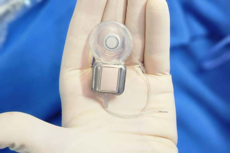 O dispositivo conta com uma parte interna, que é colocada cirurgicamente dentro da cóclea (caracol da audição) e uma parte externa (que fica visível na parte posterior da cabeça) que é formada por um processador que capta o som ambiente. As duas partes são conectadas por um ímã, sendo que a externa deve ser retirada para tomar banho e dormir, e a bateria precisa ser carregada.