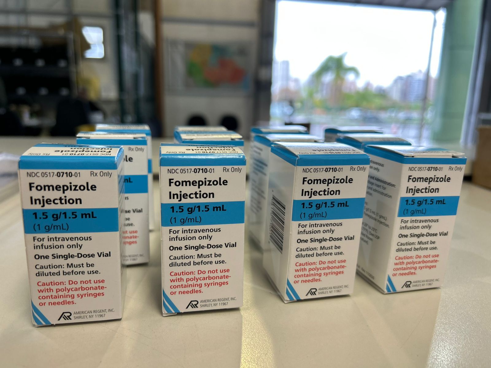 ANTÍDOTO – A Secretaria recebeu do Ministério da Saúde, nesta sexta-feira (10), 84 frascos de fomepizol, que também é um antídoto utilizado no tratamento de intoxicação por metanol. Os insumos estão alocados no Centro de Medicamentos do Paraná (Cemepar) e serão descentralizados em momento oportuno. A Sesa realizou a compra de 424 ampolas de etanol farmacêutico, que já está sendo utilizado no tratamento de intoxicações por metanol. O quantitativo deve ser entregue na próxima semana. O Ministério da Saúde enviou ao Paraná 360 ampolas deste antídoto.