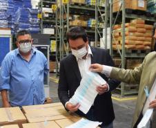 O governador Carlos Massa Ratinho Junior vistoriou nesta quarta-feira (12) o estoque dos chamados insumos secos que o Paraná já tem disponível para iniciar o processo de vacinação contra a Covid-19. São agulhas, seringas, máscaras, luvas, aventais e algodão, entre outros itens, que estão centralizados em dois pontos principais em Curitiba: o Centro de Medicamentos do Paraná (Cemepar) e o Ginásio de Esportes do Tarumã.