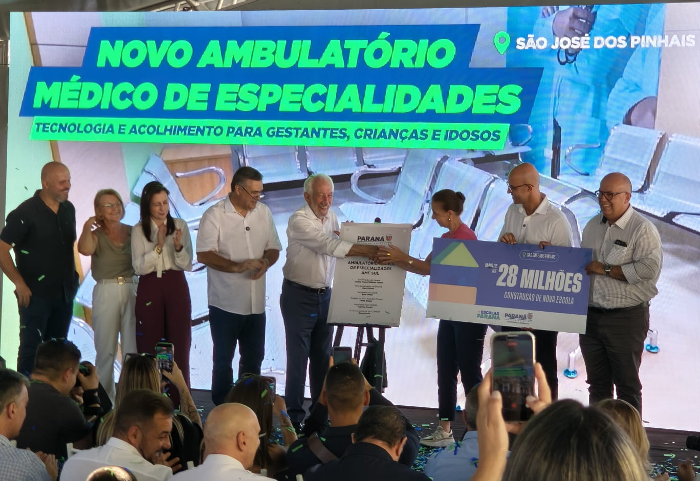 EDUCAÇÃO - Durante o evento, também foi anunciado que São José dos Pinhais irá receber uma nova escola social, por meio do Programa de Parceria Público-Privada Mais Escolas Paraná. O projeto, que teve a empresa responsável pela execução conhecida nesta semana em um leilão realizado na B3, em São Paulo, vai garantir uma unidade ao município com capacidade para atender 1.296 estudantes, em um espaço com 18 salas de aula.