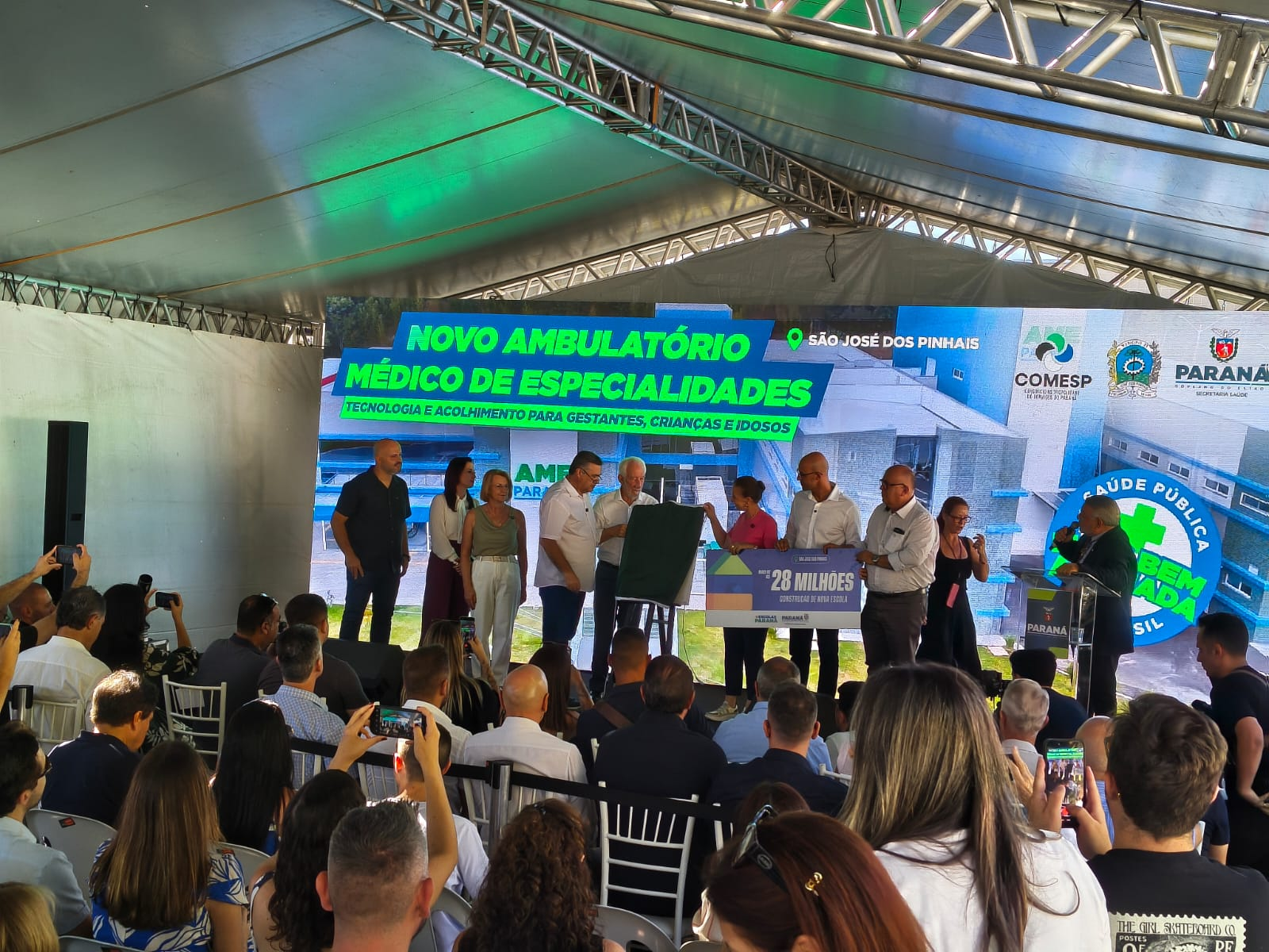 PRESENÇAS - Também participaram o presidente da Câmara de São José dos Pinhais, Wellington Leitão; o diretor-geral da SESA, Cesar Neves; a deputada estadual Marcia Huçulak; o deputado estadual, Thiago Buhrer; o presidente da Assomec e prefeito de Colombo, Helder Lazarotto;a vice-prefeita de Almirante Tamandaré, Dete Pavoni; e demais autoridades locais.