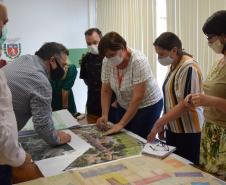 PROPOSTA – A reunião técnica teve a participação do chefe de gabinete, César Neves, da coordenadora do Núcleo de Descentralização do Sus, Juliana Istchuk Bruning de Oliveira e da arquiteta da Sesa, Michelle Poitevin. A reestruturação do Hospital contempla a implantação de novos acessos e estacionamentos, reforma dos ambientes, aquisição de novos equipamentos, contratação de profissionais especializados e ampliação da oferta de serviços.