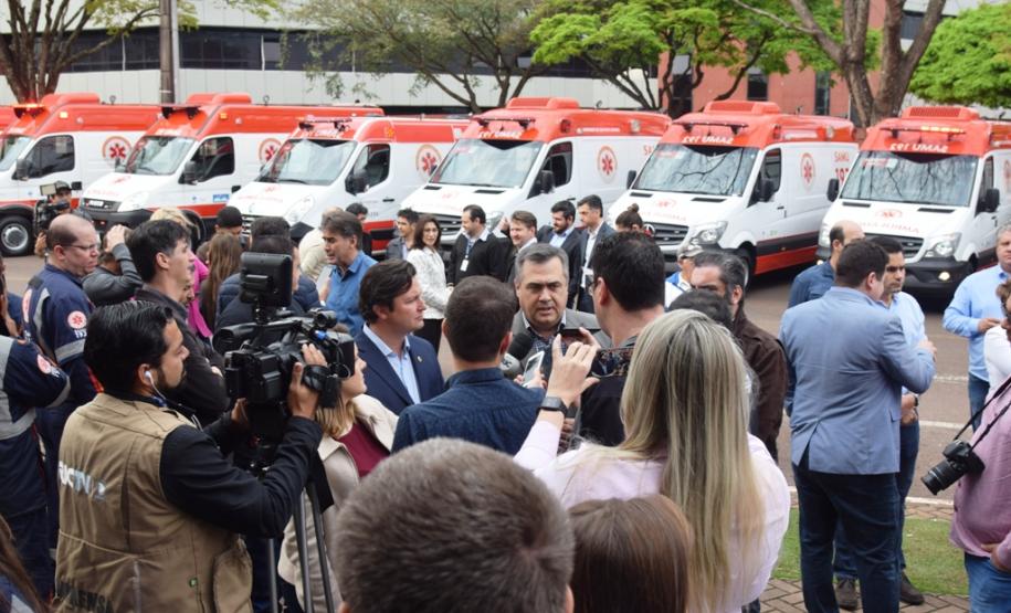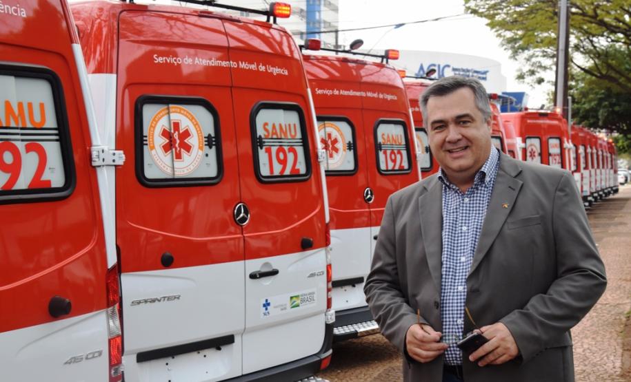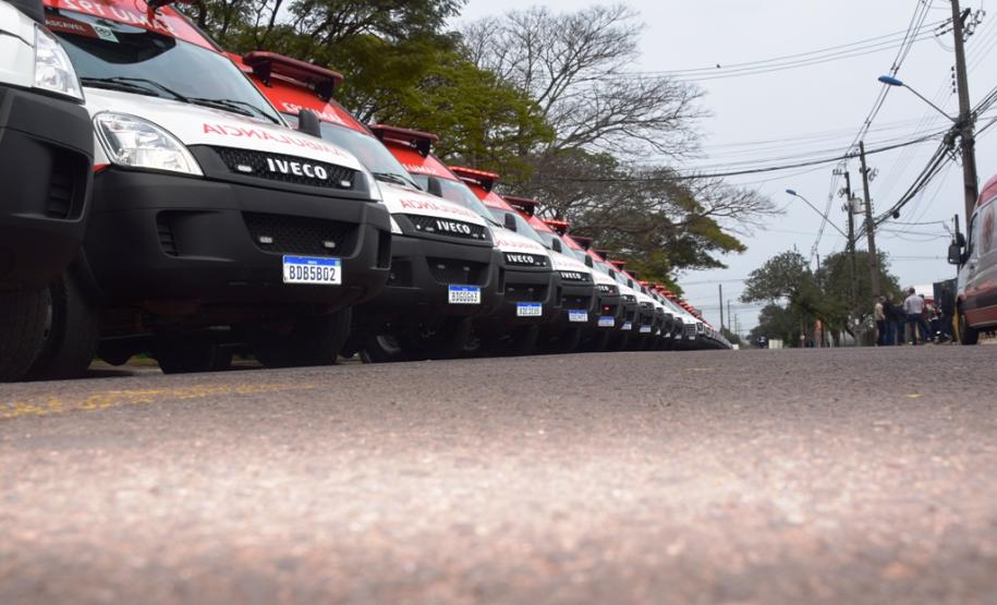 O governo do Estado entregou 31 ambulâncias para atender a região Oeste, totalizando um investimento de mais de R$ 6 milhões, nesta quinta-feira (5), em Cascavel. Os veículos foram adquiridos com recursos próprios e da União. O secretário de Estado da Saúde, Beto Preto, ressaltou a importância da renovação e ampliação da frota e do trabalho dos profissionais que atuam no sistema móvel de urgência.