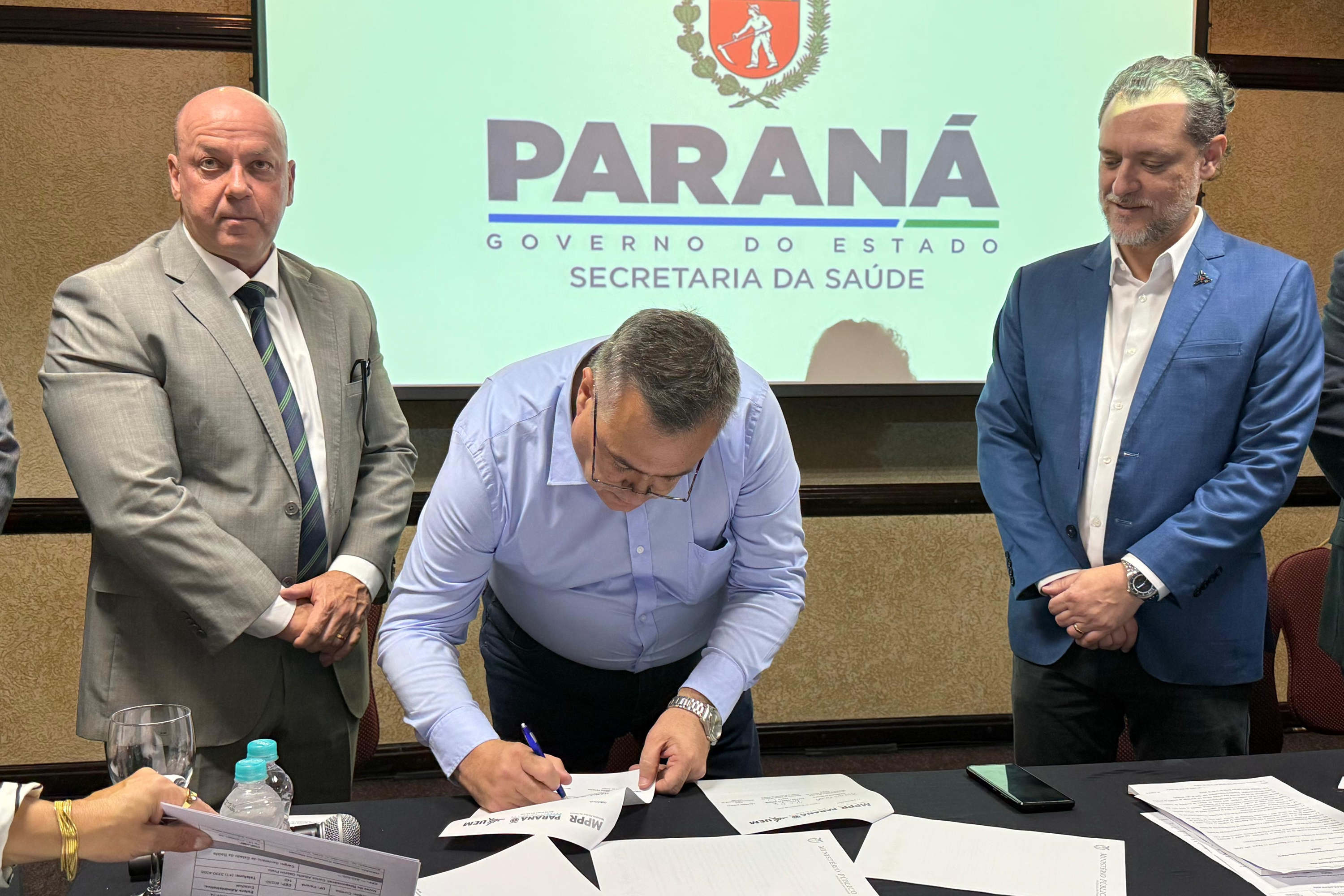 A Secretaria de Estado da Saúde (Sesa) firmou nesta terça-feira (30) um Termo de Cooperação com o Ministério Público do Paraná (MPPR) e com a Universidade Estadual de Maringá (UEM) oficializando a parceria voltada ao desenvolvimento do Painel da Dengue, uma plataforma interinstitucional que está em desenvolvimento. O objetivo é concentrar e facilitar o acesso a dados sobre a doença. A assinatura ocorreu durante a Reunião da Comissão Intergestora Bipartite do SUS (CIB).