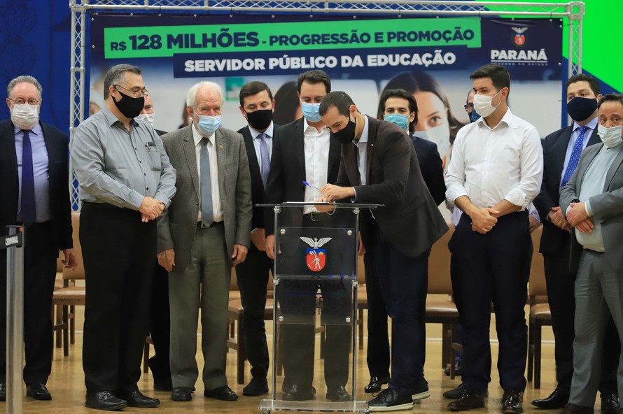 O anúncio foi feito durante a cerimônia que destravou o pagamento de promoções e progressões relativas aos exercícios de 2019 e 2020 para 16.319 servidores da educação, no Palácio Iguaçu. “Temos neste momento uma segurança maior para dar esse passo, mas sempre com toda a cautela possível, respeitando todos os cuidados em relação às normas sanitárias. Os professores estavam sofrendo muito tendo de se dividir entre as aulas presenciais e híbridas, um esforço grande”, afirma Ratinho Junior.