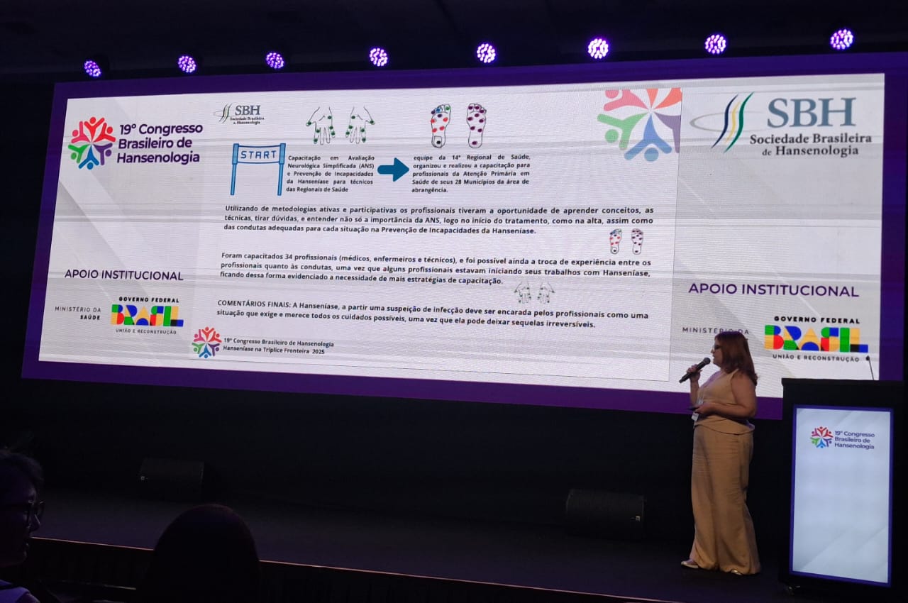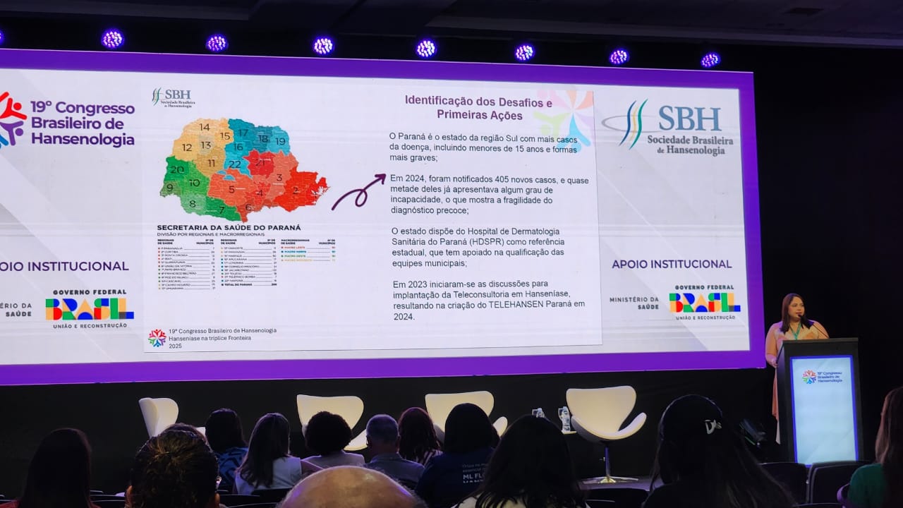 De 25 a 28 de novembro, aconteceu o 19º Congresso Brasileiro de Hansenologia, em Foz do Iguaçu. O evento, organizado pela Sociedade Brasileira de Hanseníase em parceria com a Secretaria de Estado da Saúde, teve o objetivo de aprimorar, capacitar e atualizar os recursos humanos envolvidos no enfrentamento da hanseníase, assim como divulgar ações, estratégias e experiências exitosas que visam o diagnóstico precoce, tratamento adequado, reabilitação física e proteção social das pessoas atingidas pela doença.